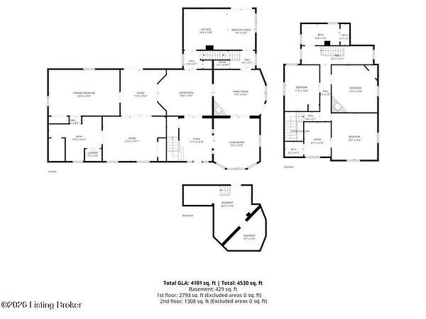 - Basement, Bathroom x 3, Bedroom x 5, Dining Room, Family Room, Laundry Room x 2