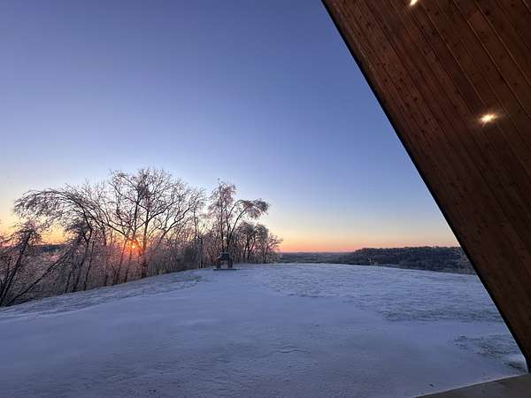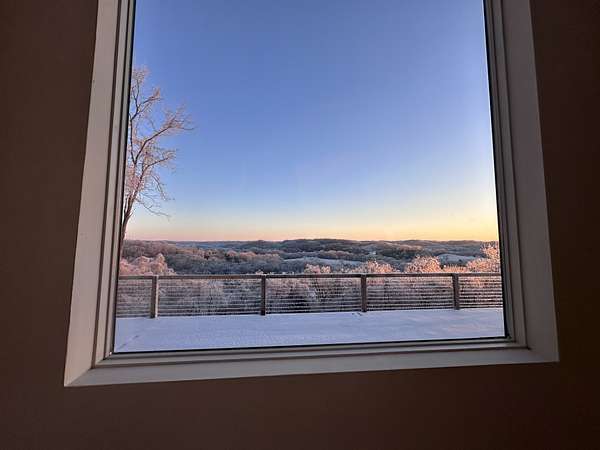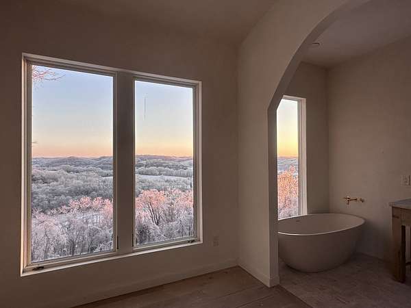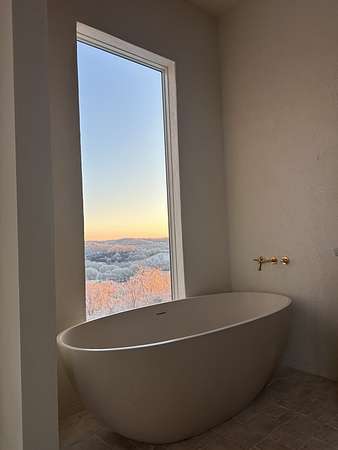 The downstairs primary suite opens directly onto a 1,344-square-foot deck, with stunning views that overlook rolling hills, neighboring pastures, and a horizon that shifts with the light. The upstairs suite shares similar sweeping views with windows that overlook the scenery and has been thoughtfully designed to be a sanctuary of rest and relaxation with a large soaking tub, a clay-tiled bathroom and the softness of raw oak floors that age gracefully over time. Other thoughtful details - including fireplaces in both bedrooms and the main living space - enhance comfort throughout the home.