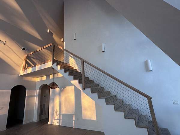 The interior reflects an organic modern aesthetic with carefully selected natural materials throughout, including raw oak floors, limewashed and plastered walls, clay tile, custom cabinetry, and unlacquered brass fixtures that patina beautifully over time. The result is a warm, timeless space rooted in craftsmanship and simplicity.