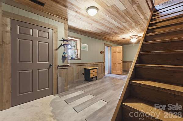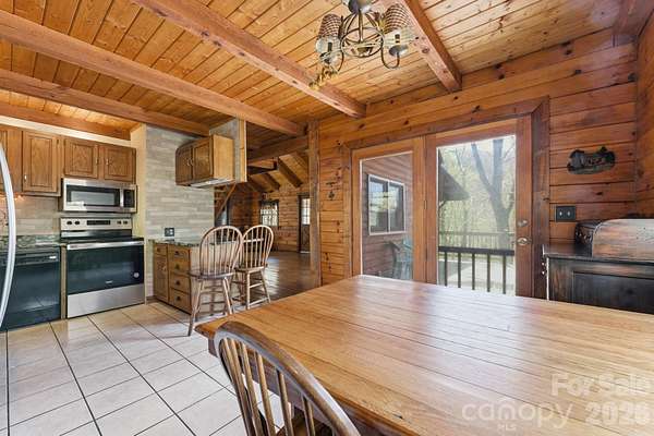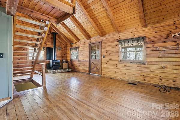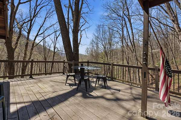 Nestled on 4.8 private acres with easy year-round paved access, this creekfront cabin offers the perfect basecamp for exploring the best of Western North Carolina. The heart of the home features a bright, open floor plan where the spacious living room is anchored by a cozy wood-burning stove and rich hardwood floors. A large kitchen with granite countertops flows seamlessly into the dining area, creating an ideal space for gathering after a day on the trails. The main floor includes a functional bedroom and a bathroom featuring a custom walk-in river rock and tile shower. Upstairs, a charming loft bedroom opens to a private balcony, accompanied by a versatile bonus room and a second bathroom where you can relax in a classic clawfoot soaking tub beneath a bright, overhead skylight. The lower level provides even more living space with a large recreation/family room and a gas stove, along with a separate storage room and a one-car carport. The outdoor space is a true sanctuary, featuring a dedicated fire pit area where you can sit and listen to the rushing creek just off the hill. While the mountain views are already beautiful, they can be opened up even further to suit your vision. This property's location is unbeatable for outdoor enthusiasts, situated just minutes from downtown Bryson City and the emerald waters of Fontana Lake. You are perfectly positioned near the world-class mountain biking at Tsali Recreation Area and the high-adventure waters of the Nantahala, Tuckaseegee, and Little Tennessee Rivers. Whether you are heading to Cherokee for entertainment, hopping onto the scenic Blue Ridge Parkway, or taking a short drive into Asheville, you are surrounded by endless hiking and biking trails. With its blend of privacy, creekfront sounds, and proximity to every major mountain attraction, this cabin is an incredible opportunity for a personal retreat or a premier vacation rental.
