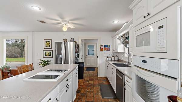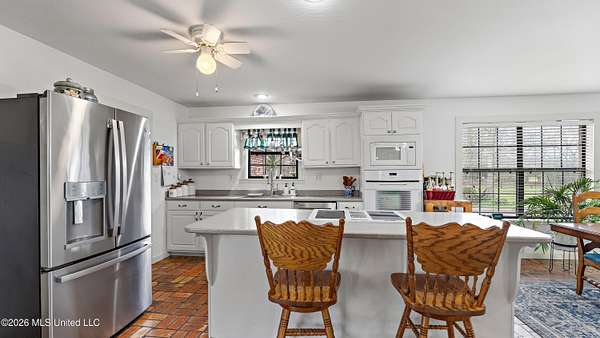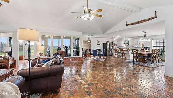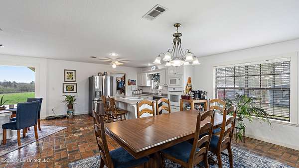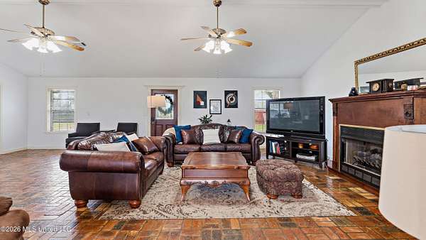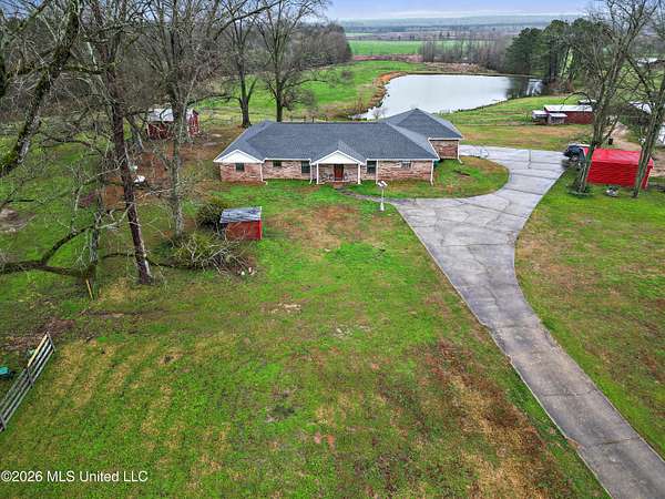 Situated on 29+/- acres, this 3,200+/- square foot home offers space, comfort, and versatility. The home features 3 bedrooms and 3 full bathrooms with a functional layout designed for everyday living and entertaining. Inside, you'll find a spacious open living room, a large kitchen with an oversized island, breakfast nook, and open dining area. Fresh paint throughout gives the home an updated feel. A separate office provides dedicated workspace, while generously sized bedrooms include large walk-in closets. The primary suite features a recently updated bathroom. A full bath near the rear entrance is ideal after working outdoors. Enjoy the inviting front porch, rear patio, and bright sunroom overlooking the property. Outside, the land offers endless potential with a 2+/- acre pond and room for a mini farm, gardening, recreation, or simply enjoying privacy. Improvements include a 1,500+/- square foot workshop, storage shed, and a 3,500+/- square foot covered pole barn -- providing ample space for equipment, livestock, or hobbies. This is a rare opportunity to own acreage with a well-appointed home and exceptional outdoor improvements.