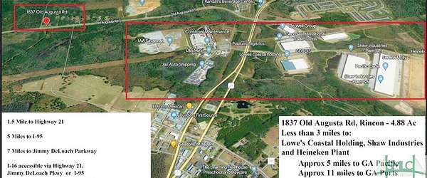 Zoned I-1 - Light Industrial - One of the last few Tracts left in this Corridor. Approx 4.5 Acres Upland. Wetland Delineation Exhibit attached. Current Growth in this Corridor is rapidly taking place. 1.5 Mile to Highway 21 - 5 Miles to I-95 - 7 Miles to Jimmy DeLoach Pkwy and easy access to I-16 from all Roadways. Less than 3 Miles to Georgia International Trade Center, i.e. Lowe's Coastal Holding, Shaw Industries Plant and Heineken USA. Approx 5 Miles to GA Pacific and GA Power/Plant McIntosh - 11 Miles to GA Ports Authority.