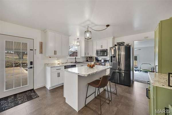 Discover your perfect retreat in this newly remodeled full brick home, nestled on a sprawling 5-acre cleared lot. This charming property features three spacious bedrooms and two modern bathrooms, providing ample space for families or those seeking a peaceful escape. Step inside to find two inviting living areas that offer flexibility for relaxation or entertainment. Cozy up by the wood-burning fireplace, perfect for chilly evenings. The crawl space is fully encapsulated with a sump pump, ensuring a dry and secure environment. The heart of the home is the stunning kitchen, boasting sleek black stainless steel appliances and ample counter space, making it a chef's dream for cooking and entertaining guests. Outside, you'll appreciate the detached two-car garage, providing extra storage and convenience. The expansive acreage offers endless possibilities for outdoor activities, gardening, livestock, or simply enjoying nature.