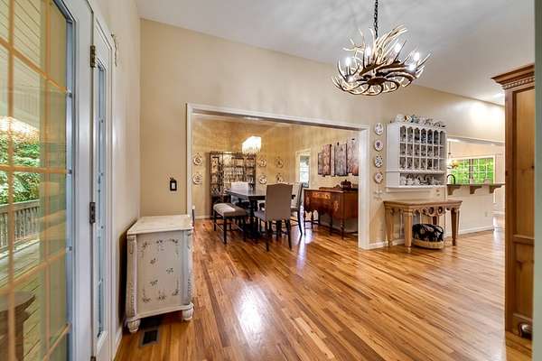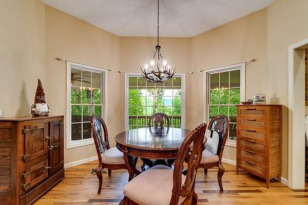 Experience gorgeous mountain views, exceptional privacy, and superior craftsmanship in this stunning mountain estate. A paved drive provides upper and lower-level parking. The foyer opens to a formal dining room, guest bedroom or office, and a spacious living room with gas fireplace and deck access-perfect for enjoying the views. The gourmet kitchen features a bay-window breakfast nook, stainless steel appliances, custom cabinetry, and elegant countertops, with a large butler's pantry and laundry area nearby. The main level also includes a half bath and two guest bedrooms with a Jack-and-Jill bath. The luxurious primary suite offers a soaking tub, dual vanities, walk-in closet and private deck access. The lower level includes a private guest suite, sitting area, game/family room, workshop/storage, and oversized two-car garage, plus a large covered patio area. Upstairs, a spacious unfinished attic offers unlimited potential. A whole-house generator adds peace of mind. Over 6,000 sq ft under roof-move-in ready with room to expand!