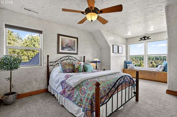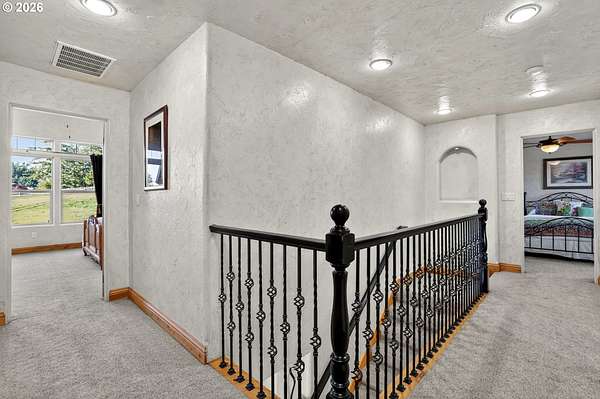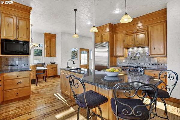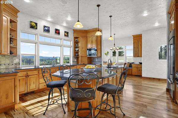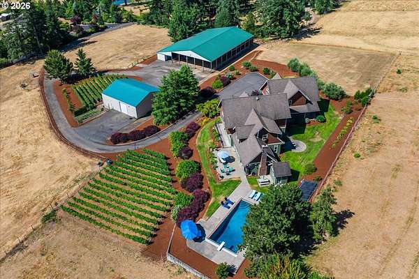 Experience peaceful, private living on this lovingly cultivated custom 2003 estate offering 4,047sqft of versatile, elegant space and breathtaking territorial and peek a boo mountain views. Enter through a gated drive to find high quality finishes throughout hardwood and tile floors with carpeted bedrooms, built ins, vaulted ceilings, walls of windows, cozy wood stove plus gas fireplace, and an entertainer's kitchen featuring a 6-burner gas cooktop, pot filler, secondary prep sink, large island seating, breakfast nook, and formal dining. The home includes three en suite bedrooms, a dedicated office, spacious laundry room and an attached upstairs loft ideal for multi-generational use or rental income, plus an oversized attached three car garage. Step outside to a covered wraparound porch, solar heated inground pool and mature landscaping with blooms year round. The property includes a vineyard planted in 2008 (first vintage 2012) that has produced high quality, competition recognized wines. Equestrian amenities: an efficient 6 stall stable with tack room and heated wash rack, a 60x108 indoor arena, and fenced/cross fenced pastures suitable for horses or livestock. Additional improvements include a large detached insulated shop with pull through roll up doors and a finished attached building used as a sizable home office/recreation space. Over 10+ acres of quiet and serene yet conveniently close to shopping, dining, downtown and the airport-this private sanctuary truly offers something for everyone.
