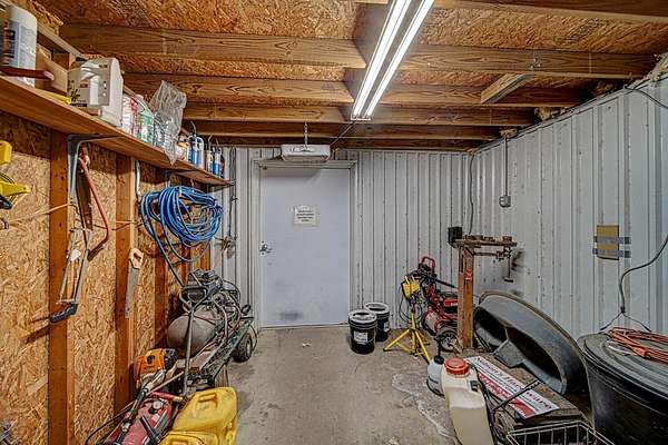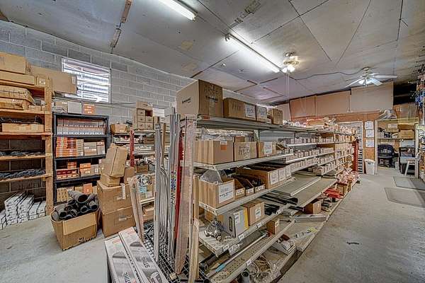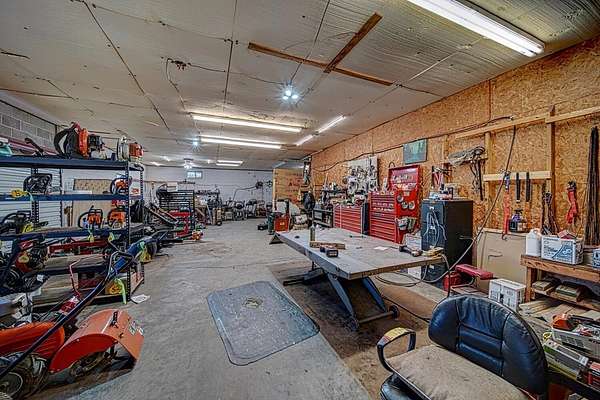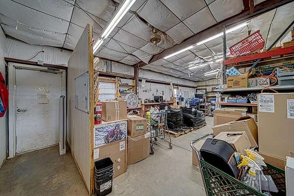 - Ceiling Fan(s), Clear Span, Garage Doors, Living Quarters, Public Restrooms, Sheetrock, Telephone, Wood
