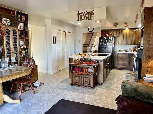 Welcome to your peaceful country retreat! This spacious 4 bedroom, 3 bath farmhouse sits on 6.5 beautiful acres surrounded by breathtaking views. Inside you'll find a large, inviting living room and a big eat-in kitchen-perfect for gatherings and everyday living. The expansive dining room is ideal for hosting family dinners or entertaining guests, while the cozy front family room with a fireplace creates a warm and welcoming atmosphere. The main floor features a primary bedroom suite for convenient single-level living. Upstairs, you'll find two additional bedrooms, a full bath, and a separate entrance - once a private apartment, now ready to be brought back to life as guest quarters, an in-law suite, or a rental opportunity. Check out the full, unfinished basement for even more storage solutions. Enjoy the outdoors from the spacious wood deck overlooking your private acreage. The expansive yard includes a large barn and shed, offering endless possibilities for hobbies, animals, or storage. If you're looking for country charm, room to roam, and a home full of character and potential, this farmhouse is the perfect place to call your own! Sold as is.