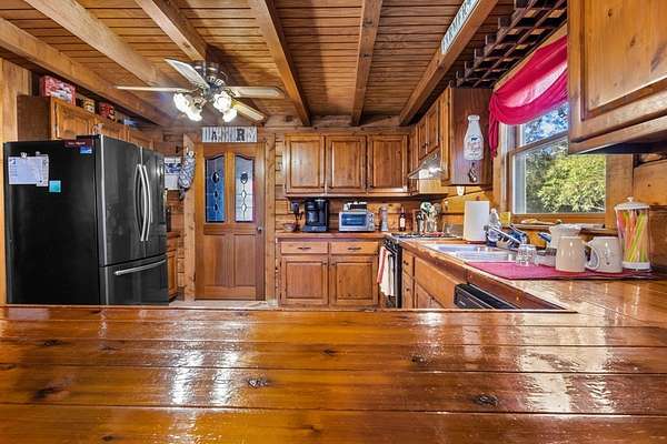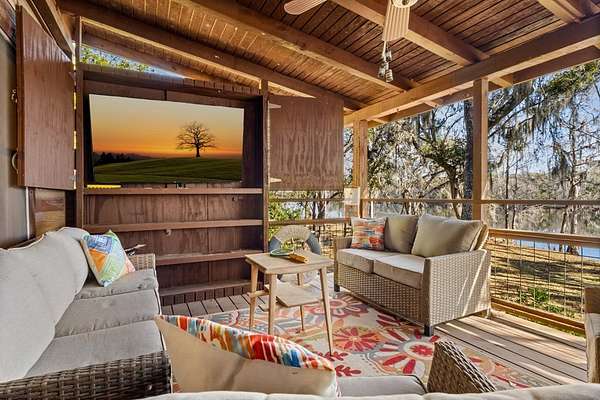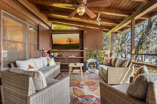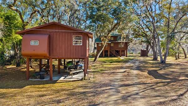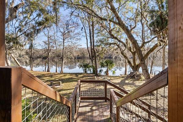 Discover your own riverfront retreat on the scenic Suwannee River in Old Town. This unique waterfront property offers the perfect blend of privacy, versatility, and natural beauty. The main residence is thoughtfully designed for comfortable everyday living. Inside, the home is highlighted by beamed ceilings that add warmth and character, beautifully complemented by custom wood kitchen countertops, while outside the expansive porch offers ample space for entertaining and relaxing as you take in sweeping views of the river. A separate guest house provides ideal accommodations for extended family, visitors, or potential rental income. Enjoy peaceful mornings and relaxing evenings overlooking the water, with direct access for boating, fishing, kayaking, and enjoying Florida's natural springs and wildlife. The spacious lot offers plenty of room for outdoor entertaining, gardening, or simply soaking in the tranquil setting. The property is also equipped with two RV hookups with power and water ready for use. Your front-row seat to river living, perfectly positioned just minutes from Hinton Landing Boat Ramp for effortless launches and endless summer adventures. Whether you're searching for a full-time residence, a weekend getaway, or an income-producing river property, this Old Town gem delivers exceptional opportunity on one of North Florida's most iconic waterways. Schedule your private showing today and experience Suwannee River living at its finest.