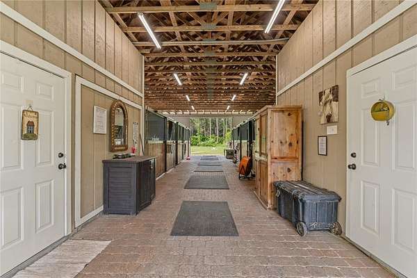 - Barn &/Or Stalls, Exterior Lighting, Extra Building/Shed, Fruit Trees, High Impact Doors, Pool, Screened Porch, Stables