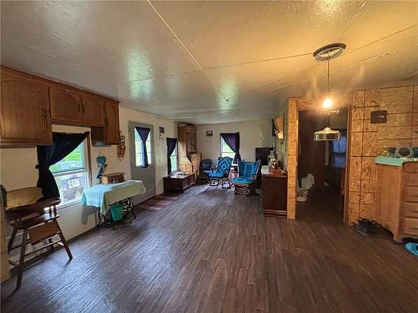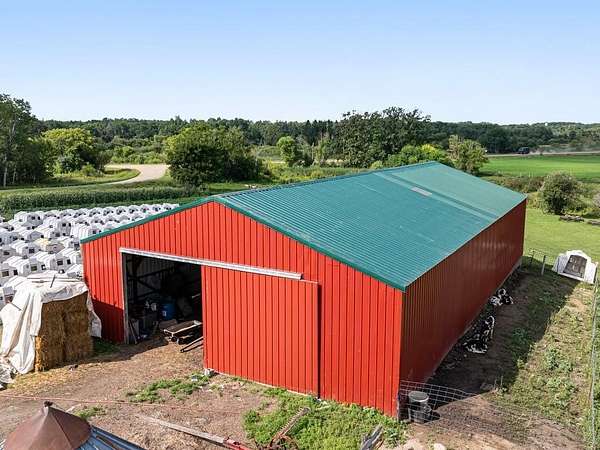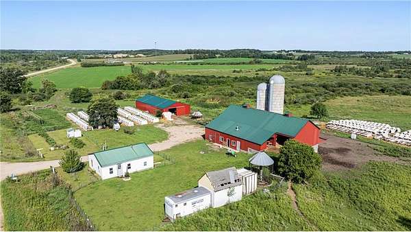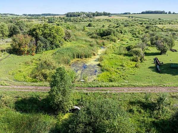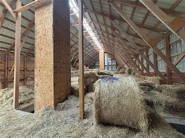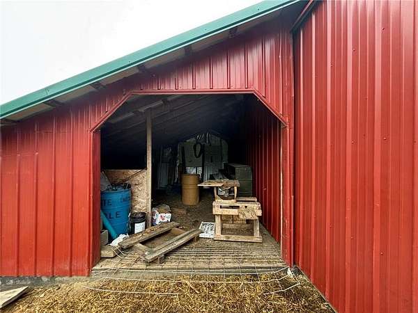 Perched on a scenic hilltop, this 81-acre farmstead features a diverse blend of income-producing farmland, useful infrastructure, and prime hunting ground complete with a creek and pond. This property includes approximately 40 acres tillable land, 15 acres fenced pasture, and additional lowland that supports thriving wildlife habitat. This area is well known for its abundance of WHITETAIL DEER, pheasant and turkey. The modest single bedroom home does not include a bathroom but does have running water. Outdoors you will find a biffy with a compliant holding tank. Adding to its versatility, the property also offers an 80x40 POLE SHED and 80x60 BARN, giving you plenty of options. Whether you're looking for a hunting retreat, a building site with spectacular views, or a working farmstead, you'll find it here.