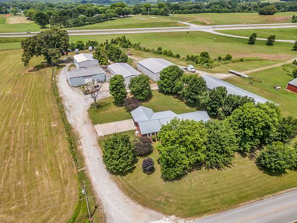 Est $6,460/moCommercial property on major highway together with a nice brick house and 30.9 acres. 4 separate red iron shop buildings totaling 12,800 sq. ft. Nice brick house has approx. 2,500 sq. ft. with 3 bedrooms, 3 baths, kitchen, formal living room, den, office, and carport. Tract has over 2,400' road frontage with high visibility. Former location of a trucking company.