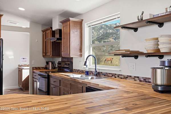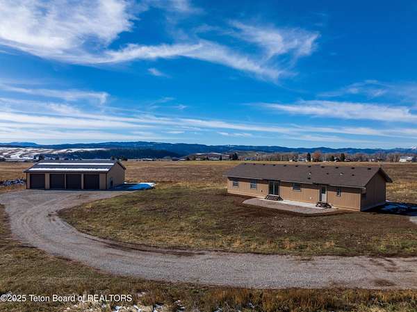 Welcome to 184 Buttercup Lane - a like-new home on 2.35 private acres with breathtaking mountain foothill views from nearly every window. Built in 2022, this 1,867 sq. ft. residence offers 2 spacious bedrooms, a versatile den/office that can serve as a third bedroom, and two living areas ideal for entertaining or relaxing. Inside, enjoy abundant natural light and modern comfort throughout. The chef-inspired kitchen showcases custom walnut-finish cabinets, beautiful butcher block countertops, and neutral laminate flooring. All appliances stay, including a premium Speed Queen washer and dryer. The interior is immaculate-the owner never hung items on the walls, leaving them in pristine condition. The primary suite features a walk-in shower and deep soaking tub, with custom window treatments and an open, airy layout that blends modern design with a spacious feel. Outside, a brand-new 54' x 40' shop (built in 2024) offers four 10' x 10' doors;perfect for vehicles, boats, or recreational toys. Located at the end of a private road, this property provides peace, privacy, and seclusion with no CCRs and no HOA. Enjoy true country living andbring your animals, garden, and outdoor hobbies to make the most of this beautiful retreat. Bedford Water and sweeping mountain views complete this exceptional offering.
