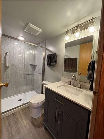 - Cathedral Ceilings, Ceiling Fans, Eat In Kitchen, Main Level Primary, Natural Woodwork, Primary Suite, Skylights, Sliding Glass Doors