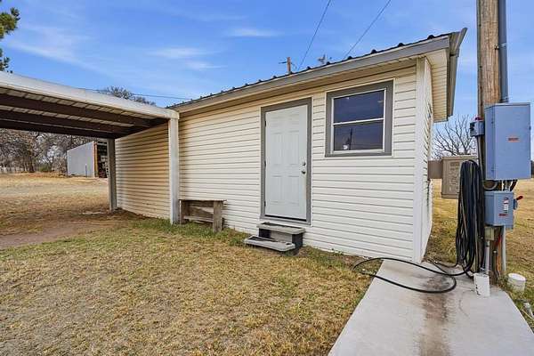 HOME IS SOLD AS IS!!! Spacious Country Living on Nearly 2 Acres! Welcome to 184 County Road 129 in Clyde, TX--an inviting property offering room to breathe both inside and out. Situated on almost 2 fully fenced acres, this home provides privacy, well water, and a peaceful escape from the hustle and bustle of city life. The property features four covered carport spaces, a storm shelter, and a shop with electricity, complete with a swamp cooler and dedicated hay loft, making it ideal for hobbies, storage, or livestock needs. Home has a RV hookup. Enjoy outdoor living with multiple patios, perfect for relaxing or entertaining. Inside, you'll find a large sunroom filled with natural light, two spacious bedrooms, and two full bathrooms. The eat-in kitchen offers direct access to an additional patio, blending indoor and outdoor living seamlessly. Two generous living areas provide flexibility--use one as a formal dining space if desired. The cozy den features a wood-burning fireplace, creating a warm and welcoming atmosphere. A large laundry room adds extra convenience and storage. With an abundance of space, thoughtful features, and a serene rural setting with well water, this property offers comfortable country living with endless possibilities. Solar Panels will be taken off before the sale of the home unless buyer wants to pay the exiting loan off can be negotiated