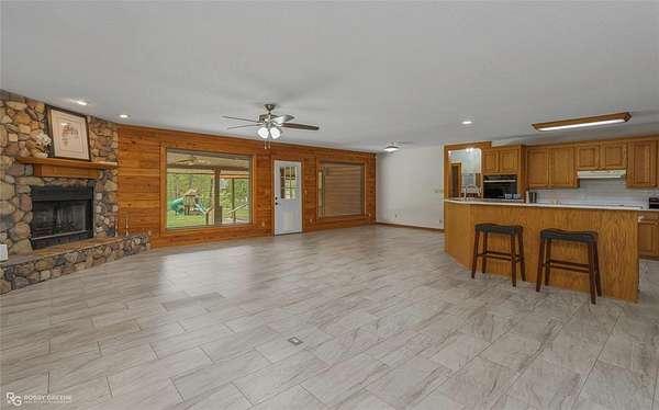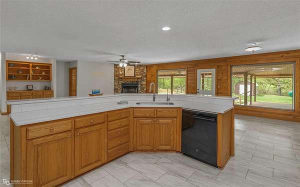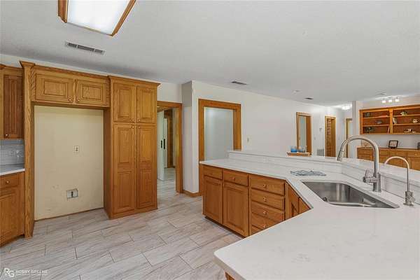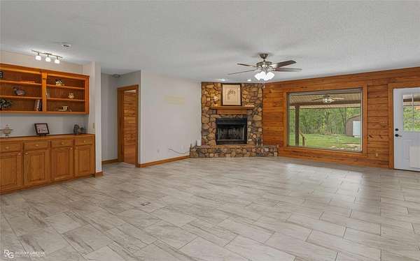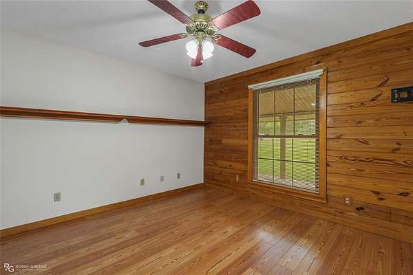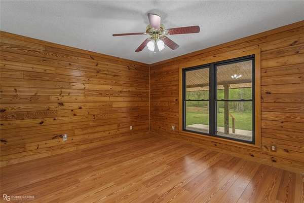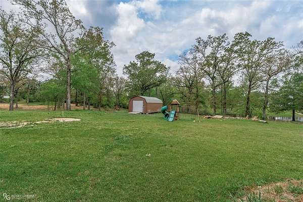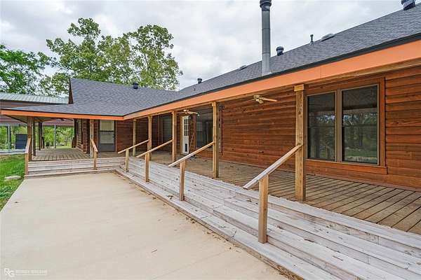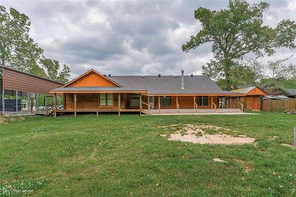 Stunning LOG HOME nestled on 1.5 acres with a blend of rustic character and modern updates. In the desirable North Desoto school district. Enjoy the beauty of nature with your own pond while relaxing on the back porch, swimming or fishing! The amazing porch wraps around 3 sides of the house. New roof in 2024. Fully open living room kitchen floor plan. Excellent for entertaining. Wrap around breakfast bar and separate dining area. Several recent upgrades, NEW oven, cook top, dishwasher and flooring. NEW quarts counter tops in kitchen and both bathrooms. Fabulous stone fireplace brings coziness and warmth to any gathering. Perfect bonus room off from the kitchen and living room for your office, playroom or craft space. Primary bedroom is remote with en-suite bathroom, large walk-in shower and closet. Complete 355 sq ft bonus room above the garage that can also serve as a home office, guest space, or hobby room. Covered RV parking space. Large outdoor workshop and storage building with electricity. Also wired for above ground pool. Gym set is ready to play on. With the warmth and charm of log construction, modern conveniences and plenty of outdoor space to enjoy, this property offers a peaceful retreat while still providing the comforts of updated living.