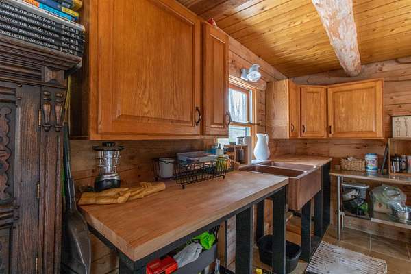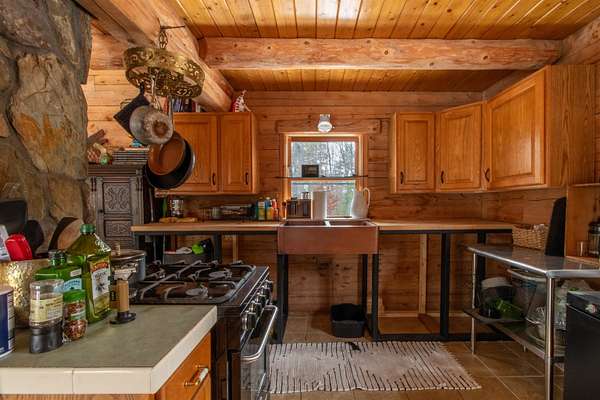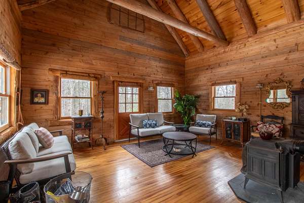 Tucked away in the peaceful woods on 41.61 acres, this off-grid log-sided cabin offers the privacy and simplicity you’ve been dreaming of. Surrounded by nature and enrolled in Current Use, the land invites you to explore, hike, and enjoy classic Vermont features, including old stone walls that weave through the property. Inside, you’ll find a warm wood interior with exposed log beams and an open-concept layout centered around a woodstove with a beautiful stone chimney as its focal point. A gas refrigerator and gas stove add convenience, and the open sleeping loft above provides a restful retreat. The full concrete basement offers excellent storage space and added utility. Step outside onto the open deck that wraps around two sides of the cabin—perfect for morning coffee or relaxing after a day outdoors. Gather around the outdoor firepit area in the evenings and take in the quiet surroundings. Additional features include a drilled well, generator, wood shed, storage shed, separate bunkhouse for guests, and an outhouse. Accessed by a trail (not town-maintained), this property is ideal for those seeking a private getaway. Conveniently located just minutes from Route 302 and I-91 for easy travel, and close to the Connecticut River, Haverhill Corner, and year-round outdoor recreation opportunities. If you’re looking for a peaceful escape with room to roam, this one is worth the journey.
