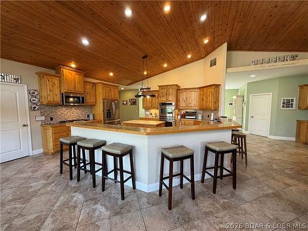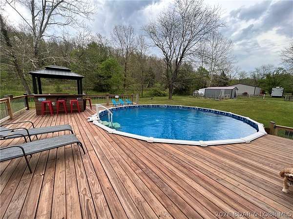 Are you looking for a peaceful setting close to the Lake of the Ozarks? You found it! Beautiful Property with 15 +/- acres, 2 pastures (perfect for hobby farm), ATV trails....PLUS two Homes on the Property. Main Home features One Level Living, Open Floorplan, Vaulted Ceiling, Stunning Kitchen w/beautiful cabinets and tons of Counter Space, Butcher Block Island, Stainless Appliances, Pantry, Oversized Master Suite w/2 walk in closets, Soaking tub & walk in tiled shower, covered patio off master w/hot tub, 2 guest bedrooms on main level (1 is ensuite), Unfinished basement (can be used as 4th bedroom), Covered front deck- perfect for enjoying the view, Large Patio off of the HUGE Dining room and 2 car attached Garage. Guest Home features- 800 sq ft, 2 bedrooms, 1 bath, Covered Deck, Open Living Room/Kitchen Area, 2 car carport and it comes Furnished! There is also a 30x40 Garage, Barn, outbuilding (perfect for parking your toys), fenced in Garden Area and a Swimming Pool w/Large Deck w/bar (so fun)! Definitely a Park Like Setting. New Roof on Main Home, Guest Home & Well House Fall of 2024. Located a few miles from the State Park = Boating, swimming, hiking & More!