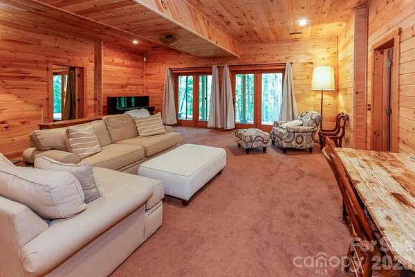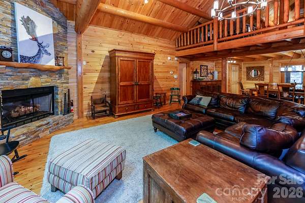 Discover your dream mountain retreat in Lake Lure! This stunning 3,768 sq ft, custom built, Northern White Cedar Log Home is a masterpiece of rustic luxury. Nestled in a private setting just outside Lake Lure, this 5 bedroom, 3 bath haven offers the perfect blend of natural beauty and modern comfort. Imagine waking up to the soothing sound of a 30 ft waterfall right in your backyard. Step inside to be greeted by soaring 18 ft cathedral ceilings and a massive stone fireplace that creates an awe-inspiring focal point. The spacious 23X23 den is ideal for large family gatherings and making lasting memories. Indulge in the finest finishes throughout, including engineered hardwood flooring, Anderson windows and doors and heated bathroom floors for ultimate comfort. Dual fuel, gas furnaces ensure year-round coziness. Value priced at just $184 per sq ft, this one-of-a-kind property won't last long. Don't miss your chance to own a slice of Lake Lure heaven.
