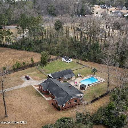 Welcome to 184 Timber Cove Drive, where space, privacy, and everyday comfort come together just outside the Whiteville city limits. Set on 2.09 acres in the established Timber Cove community, this 4 bedroom | 4 bath brick ranch rambler offers the freedom of no HOA and room to truly spread out. This home features 2,907 square feet of well-designed living space. Oak hardwood floors flow throughout the main living areas, complemented by tile in the kitchen and baths. Thoughtful details include crown molding in the dining room, a gas fireplace, and a layout that supports both daily living and entertaining. A 12' x 50' screened porch extends the living space and overlooks the backyard, ideal for relaxing mornings or winding down in the evening. Additional interior features include, custom cherry cabinets in the kitchen, a tankless water heater and a partially floored attic, providing valuable storage options. The property includes an 18' x 36' in-ground swimming pool (pump replaced approximately one year ago), gazebo, fenced backyard, and expansive usable acreage. For storage, hobbies, or workspace, you'll appreciate the detached 2-car carport, a 24' x 24' wired workshop with an attached 10.5' x 21' covered sitting area, plus an additional 12' x 24' storage building. Timber Cove is known for its larger homesites, mature trees, and quiet surroundings, offering a peaceful residential feel while remaining conveniently close to shopping, dining, and major highways. If you're looking for acreage, outdoor amenities, workshop space, and a spacious brick home in an established neighborhood with no HOA then 184 Timber Cove Drive delivers a rare combination of flexibility, privacy, and location.