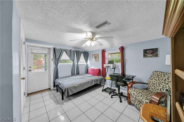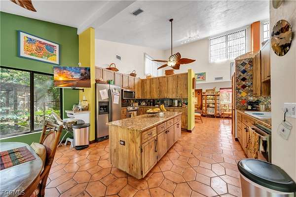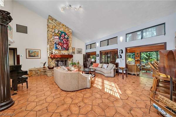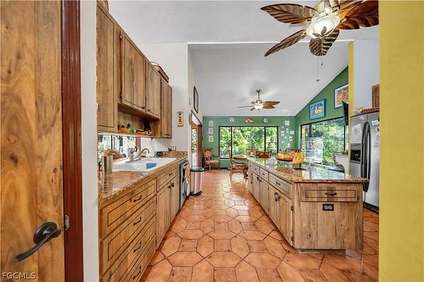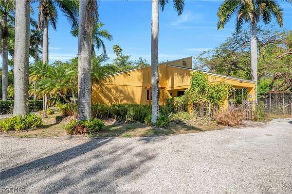 Discover a serene 1.7-acre retreat of lush, fully gated gardens and mature palm trees, perfectly private and secure. This remarkable estate features two residential buildings: a spacious main residence (3 large bedrooms, 3 baths) and a charming two-bedroom, two-bath bungalow guest house. A circular gravel driveway leads you to the property, where a double carport and a separate aluminum shop/storage structure (convertible to an additional garage) provide abundant parking and utility space. The main house is light-filled and grand, with 20-foot ceilings, high clerestory windows, a nice expansive family room, and plenty of room to add a pool-ideal for family living and entertaining. Step outside to a generous paved patio with a gazebo and a wood-fired pizza oven-perfect for gatherings or enjoying the backyard birds. The bungalow is fully equipped for guests or rental income, and a nearly finished tiny house offers flexible additional living or play space. Location highlights: perfectly situated with easy access to US-41 and I-75, combining tranquil privacy with convenient commuting. Additional features: abundant fruit trees, mature landscaping, multiple outdoor living areas, and secure, private grounds-ideal as a family compound, entertainer's oasis, or income-producing property.