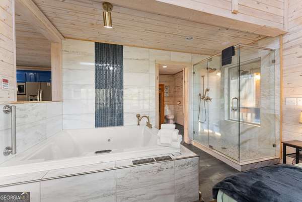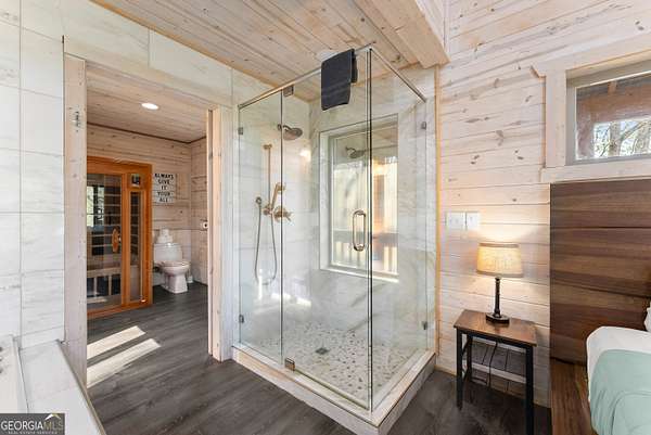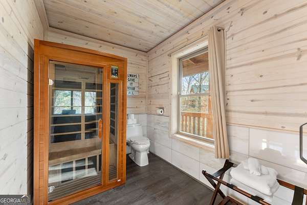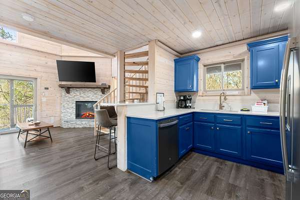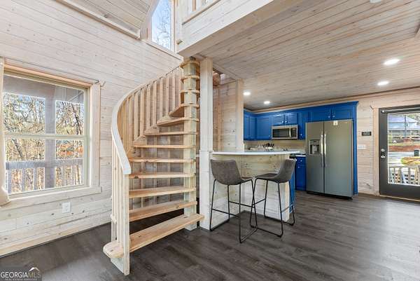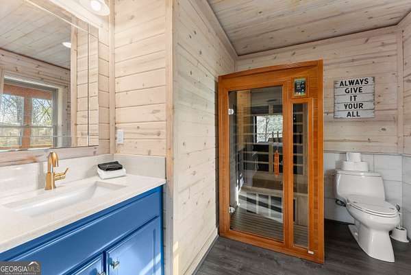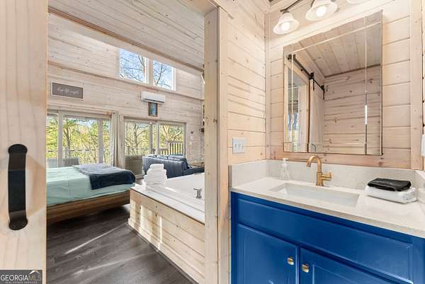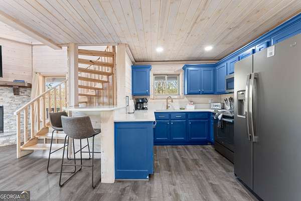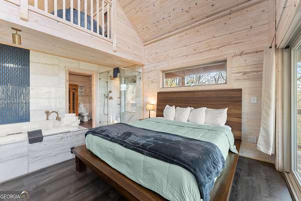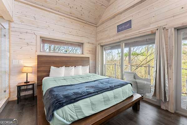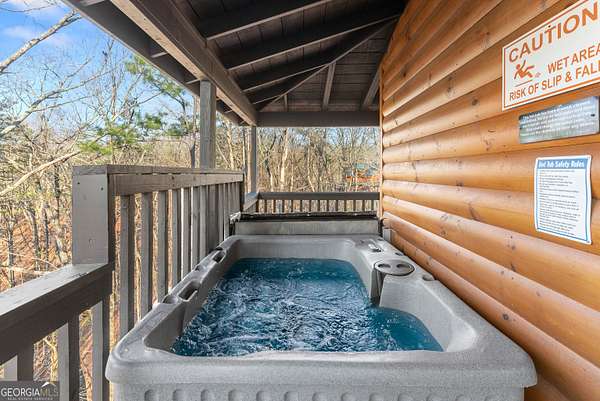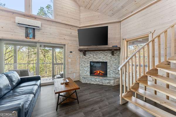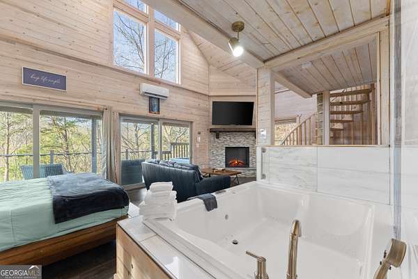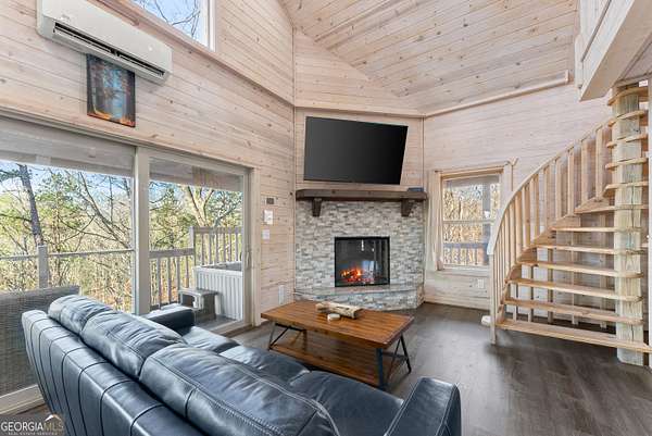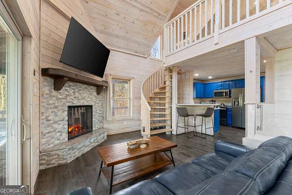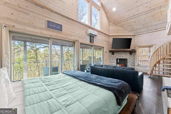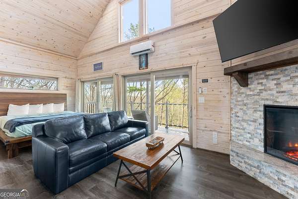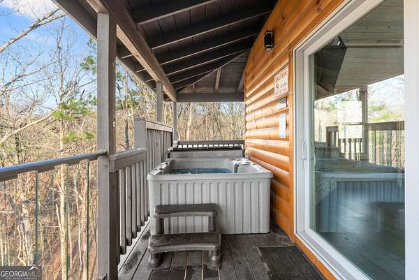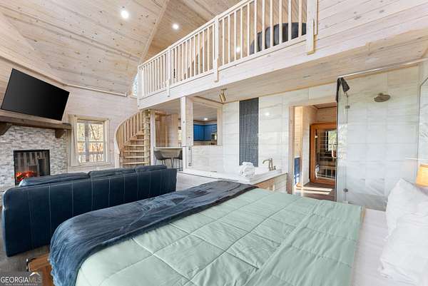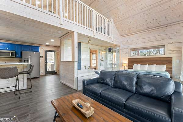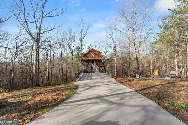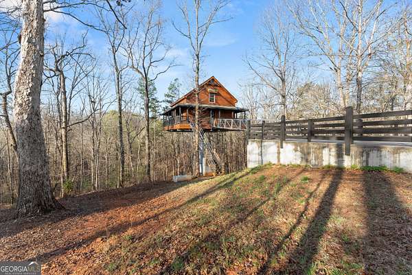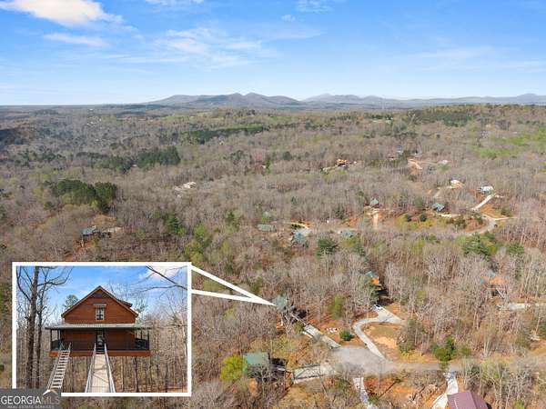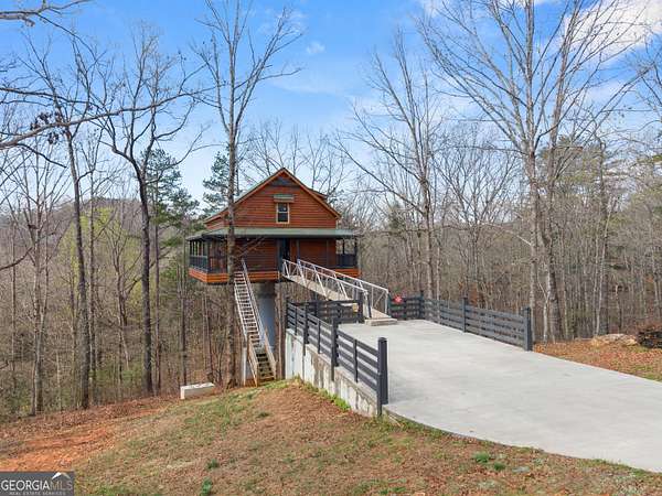PROVEN STR. Generating over $75,000 annually, this elevated treehouse-style cabin is a rare opportunity to own a high-performing short-term rental in the North Georgia mountains. Offered fully furnished and turn-key, this active STR combines strong income potential with a one-of-a-kind guest experience. Set high above the forest floor, the home offers a private and peaceful setting with a distinctive elevated design that truly stands out in the market. Inside, you'll find a bright open-concept layout with soaring ceilings, expansive windows, and abundant natural light. The main living area features a cozy fireplace and flows seamlessly into the kitchen and dining space, creating an inviting environment for guests. A loft overlooks the main level, providing additional sleeping or flex space. The spa-inspired interior includes a soaking tub, walk-in shower, and private sauna, designed to deliver a relaxing stay. Outdoors, the covered porch offers seating areas and a private hot tub, perfect for enjoying the serene wooded surroundings from an elevated vantage point. Positioned approximately 100 feet above the ground, this property delivers a memorable "treehouse" experience that continues to attract guests. Whether as a proven income-producing investment or a private mountain retreat, this cabin offers both performance and appeal.