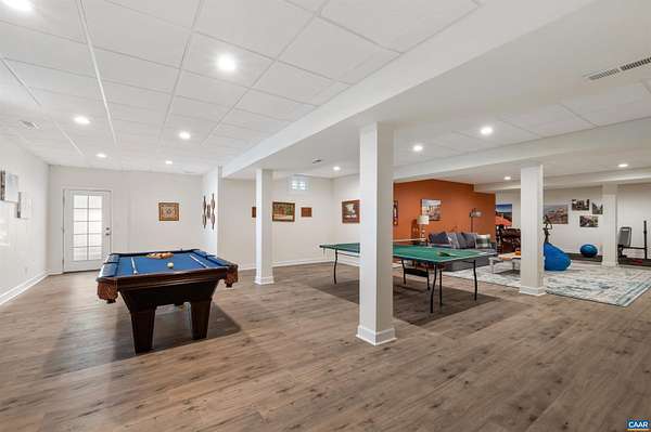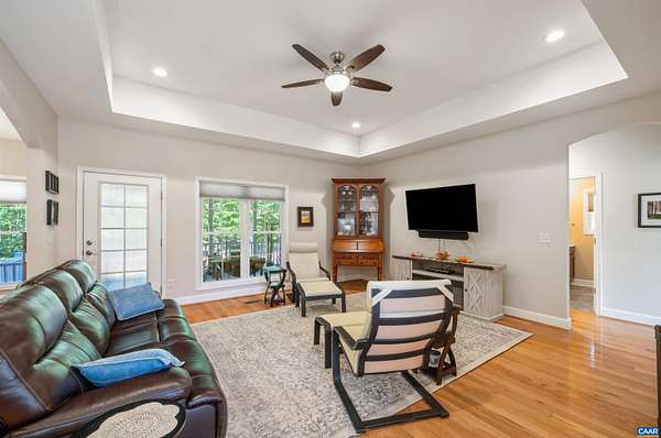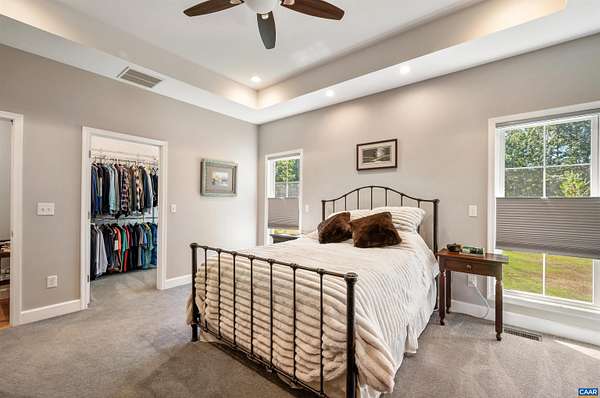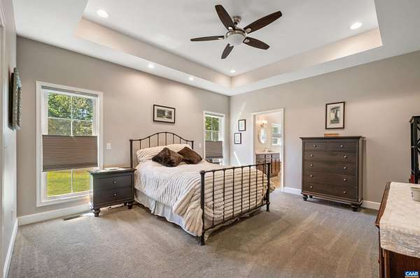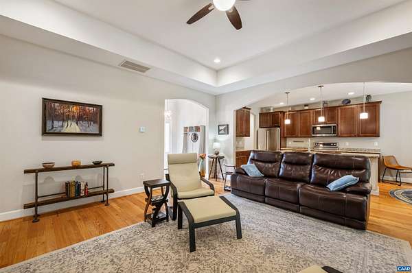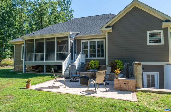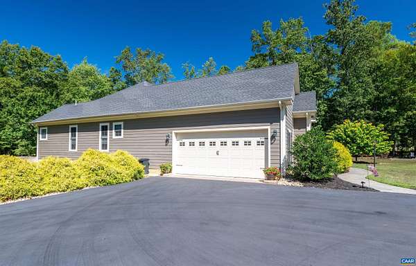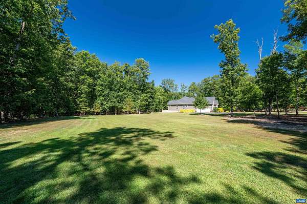 Constructed in 2016, this thoughtfully designed and custom built home in Troy offers tranquility and ease of living without sacrificing access to social and urban amenities. Situated on a private yet spacious 2.25 acre lot, the open concept 3 bed/2.5 bath floorplan lives large on a single level. Through the front door, one enters into the bright living room with tray ceilings. The luxurious eat-in kitchen- framed on one side by the oversized island with a breakfast bar- features granite countertops with maple cabinetry and soft-close dovetail drawers. Continue past the kitchen to the spacious primary suite equipped with two walk-in closets. The sizable en-suite primary bathroom features dual vanities, a soaking tub, and a larger shower. The full-size, walkout basement is the perfect flex area for a game room, home gym, or entertaining space, and comes with brand new Pergo laminate flooring. For those who enjoy the outdoors, one can choose to relax either on the new paver patio or escape to the shade of the tranquil screened porch that opens out from the living room. The oversized attached 2 car garage includes workbench space. Only 5 minutes from Zion Crossroads, 15 minutes from Pantops, and 40 minutes from Short Pump.