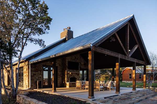 And at the heart of it all, a centered 2,000 square foot entertainment lodge awaits, inviting you to gather with loved ones, friends, colleagues, hunters, and/or clients and create unforgettable memories and consisting of a large open living room with a bar, commercial appliances, glass garage doors on both sides, two bathrooms, and a kitchen. A stone firepit is also positioned in this area. Wi-fi is also present.