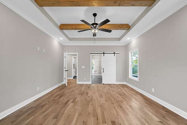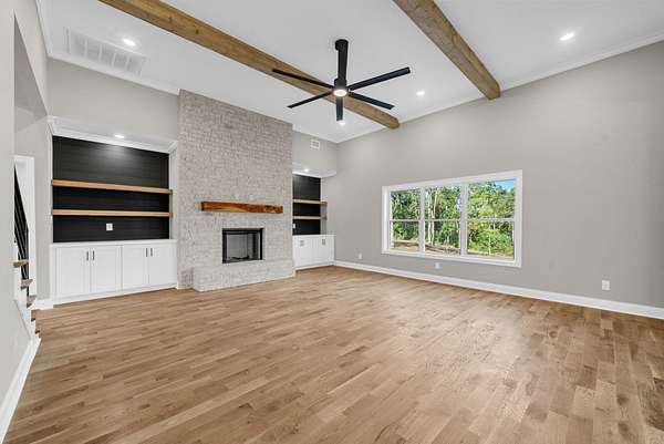This stunning 4 bedroom,4-bath home combines high-end finishes with thoughtful design on a spacious 1.93 -acre lot. The open-concept layout features real hardwood floors, quartz countertops throughout, and an upgraded trim package that adds a touch of elegance to every room. The primary suite is located on the main floor for comfort and convenience.