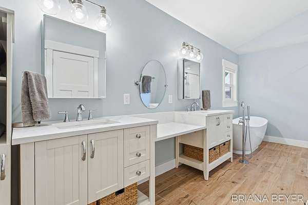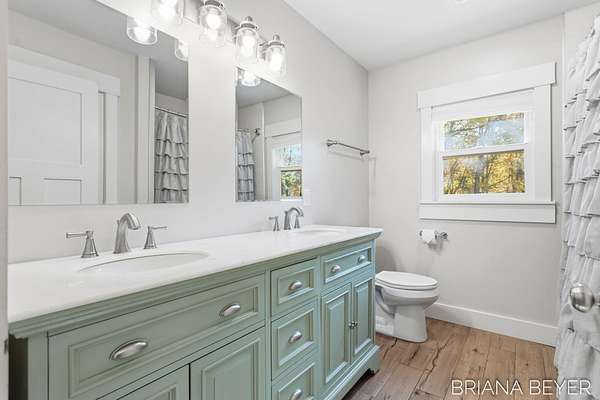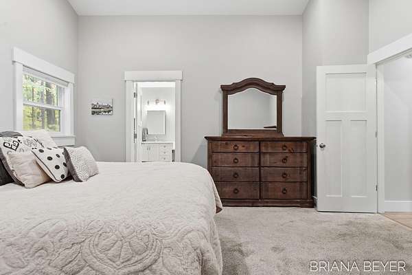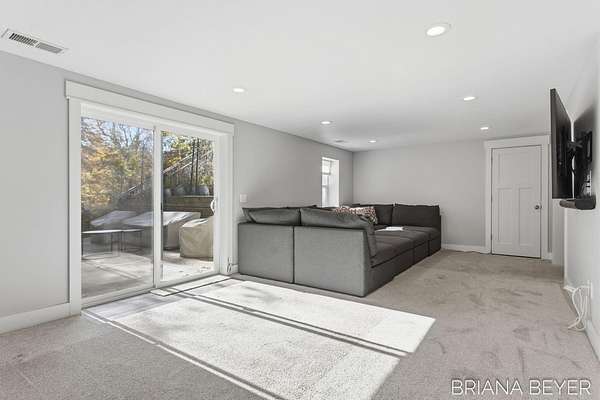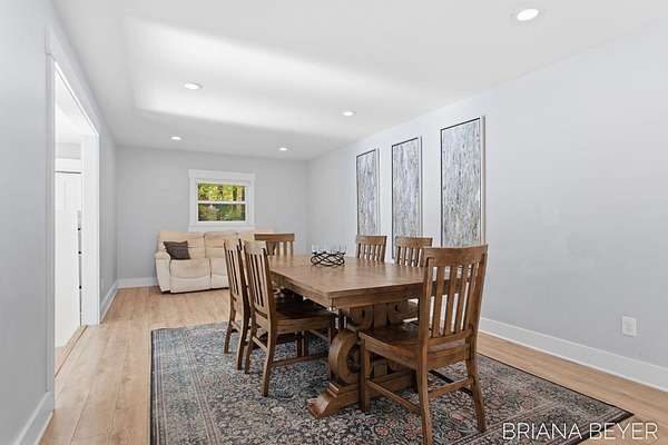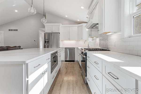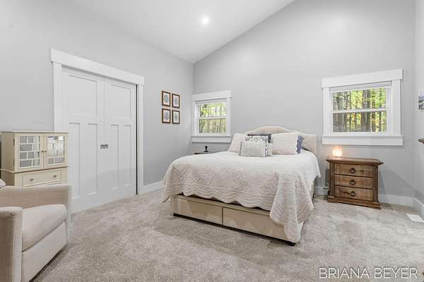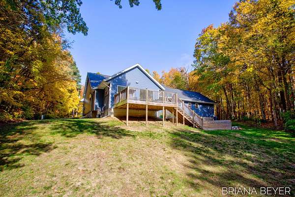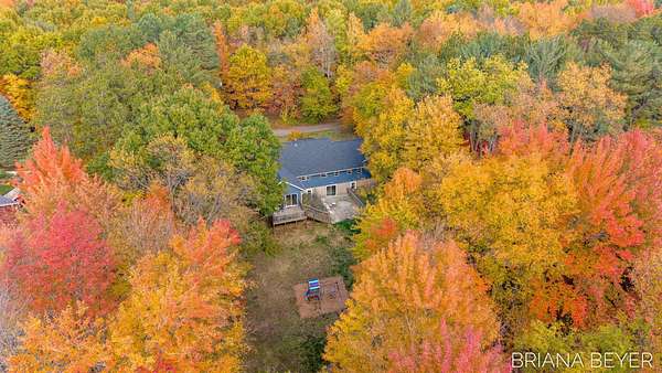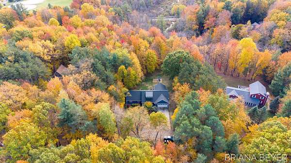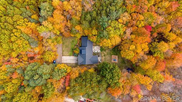 This fully rebuilt Holland ranch sits on nearly 3 acres of wooded privacy with no HOA, just minutes from Lake Michigan, Lake Macatawa, marinas, trails, and parks. With 4 bedrooms, 3 bathrooms, and over 2,800 square feet of finished space, you'll love the vaulted ceilings, stone fireplace, abundant natural light, and multiple living areas. The kitchen features quartz countertops, stainless appliances, a large island, and a window over the sink overlooking the colorful trees and wildlife. The main floor includes laundry, a spacious primary suite with walk-in closet, and a beautiful ensuite bath with a soaking tub, tile shower, and double vanities. The walkout lower level offers a large recreation room with wet bar, two additional bedrooms, and a full bath. Step outside to the stamped concrete patio or relax on the deck surrounded by nature. Attached two-stall garage and generous storage. Did you even know you could have acreage in such a convenient location? Skip the Christmas shopping this year and buy the gift that keeps on giving for years to come!
