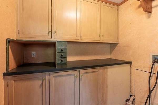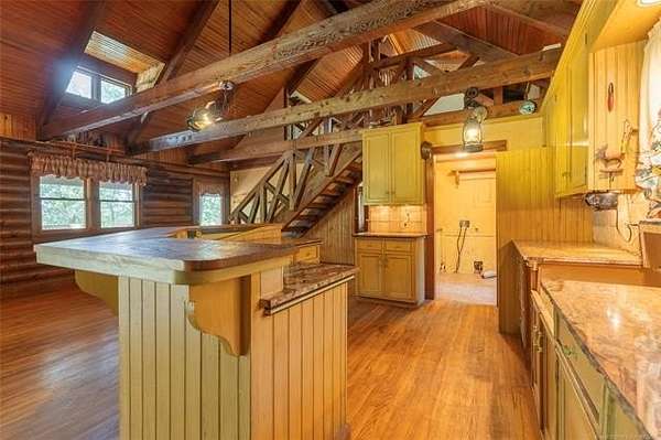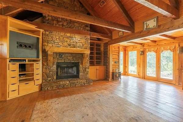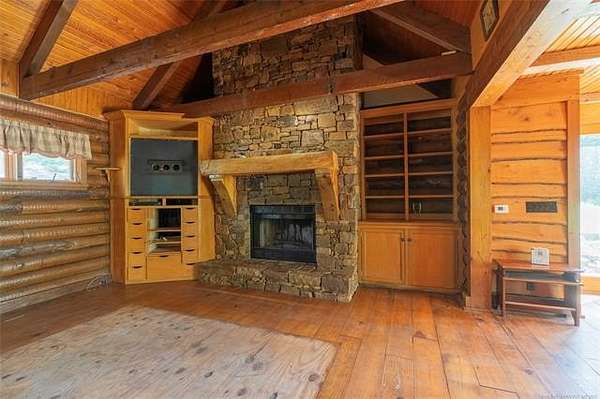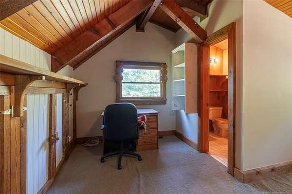 Escape to your own private mountain retreat! This 1,506 sq. ft. (per court house records) cabin on 1.95 acres is surrounded by mature trees and offers peace, seclusion, and peekaboo views of the valley below. Built in 1978, the home features soaring vaulted ceilings and a beautiful floor-to-ceiling rock fireplace creating the perfect centerpiece for the living room. Inside you'll find one bedroom, two full bathrooms, plus a loft. Granite countertops in the kitchen and custom details throughout. The cabin needs some TLC but is priced accordingly, offering a great opportunity to customize and build instant equity. A large back deck provides the ideal space for relaxing or entertaining outdoors, while two matching outbuildings add versatility, including a shop/shed with power and a second shed with a roll-up door. Practical utilities include water, electric, septic, propane tank, and an asphalt driveway with easy access off a paved road. Internet, cell service, and cable are available, and with no HOA restrictions, you'll enjoy the freedom to make this cabin property your own.