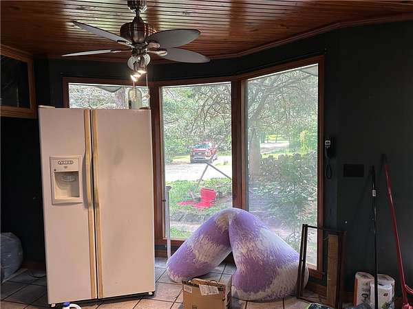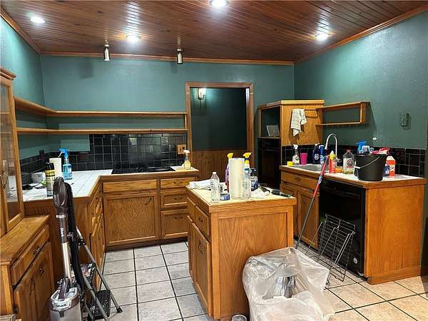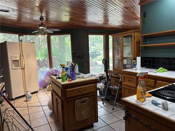- Eat In Kitchen, Split Bedrooms, Tile Counters, Tile Countertop, Wood Burning Stove