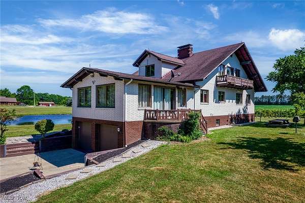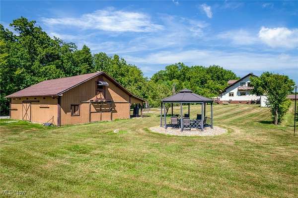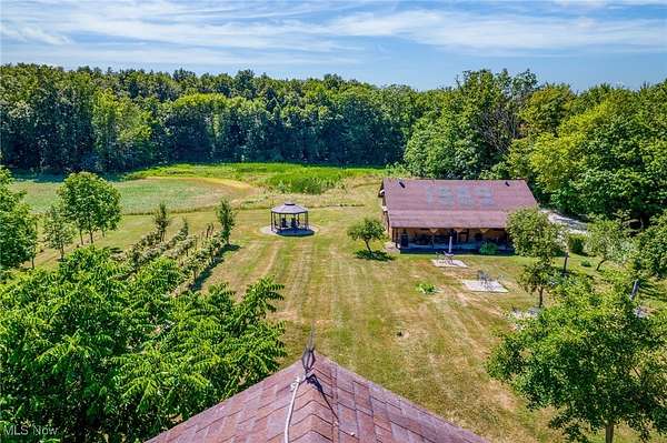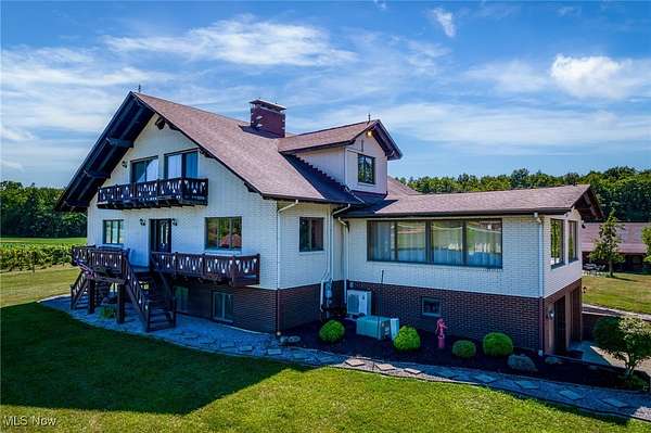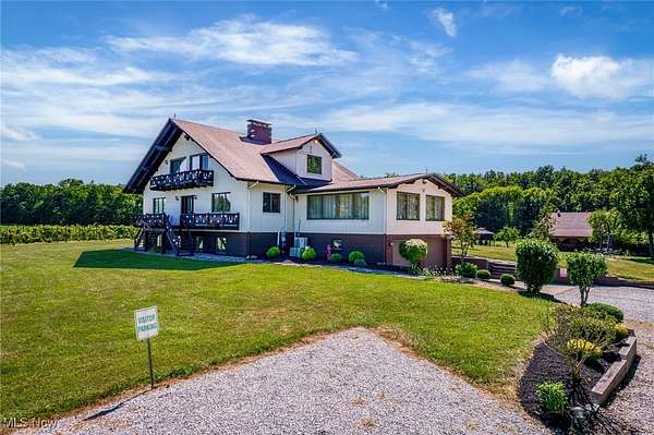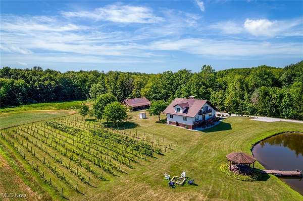 A Private Wine Country Estate with Endless Possibilities! Nestled in the heart of Ohio's wine country, this captivating 5-acre estate blends rustic elegance with exceptional potential for income and lifestyle. Whether you envision a peaceful full-time residence, a turnkey short-term rental, or a stunning venue for weddings and events, this property offers unmatched flexibility and charm. The land itself offers so much! Serene private pond with gazebo that is ideal for quiet mornings or romantic evenings. Orchard and vineyard views from the rear balcony which is perfect for sipping wine and soaking in the scenery. Beautifully landscaped grounds that are ready for outdoor entertaining or hobby farming. A versatile barn with water and electric is suitable for livestock, storage, workshop or an event space. Inside the home, are impressive features as well! An elegant primary suite with spa-style marble bath and jacuzzi tub. An expansive lower level with family room, built-in bar, and three bonus rooms for guests, office, or creative use. A heated sunroom for year-round enjoyment and entertaining. A wine cold storage room, utility area, and laundry for everyday convenience. Finally, this is ready to operate as a BnB, event venue, or private homestead from day one! All furnishings, wine-making equipment, and event seating can be available for purchase! There is zero-cost natural gas access from adjacent well, making heating both efficient and economical. An A2 Commercial Winemaking License is available for a modest additional fee. Ideal for launching your own label. All in a truly prime location just minutes from Rt. 90, local wineries, Spire Institute, Geneva-on-the-Lake, Lake Erie, and the region's iconic covered bridges. Perfectly positioned for both relaxation and tourism. Whether you're planning vineyard weddings, welcoming guests to a cozy retreat or seeking a life surrounded by natural beauty, 1841 Barnum Rd is a canvas for your vision. Envision the possibilities!