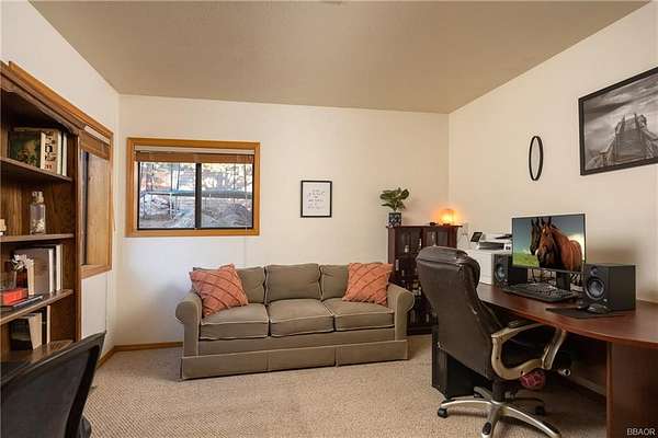 Welcome to your dream equestrian retreat with breathtaking views of Baldwin Lake, surrounding mountains, and glowing sunsets. Situated on over 2 acres of serene land, this rare property blends the tranquility of mountain living with the convenience of nearby access to the High Desert. Boasting over 3,100 square feet of living space, this spacious home features dual suites on both levels, ideal for multi-generational living or hosting guests. A large fenced yard, horse corral, barn, and arena make it a perfect haven for equestrian enthusiasts. Enjoy low-maintenance living with vinyl siding, a 40-year roof installed in 2012, and durable Trex decking for year-round outdoor relaxation. The oversized 2-car attached garage offers ample storage space, while a Generac 14kW whole-house backup generator powered by natural gas ensures you're never left in the dark. The home is equipped with owned solar panels and sits on a private well, providing energy efficiency and independence. Step outside and soak in the surrounding natural beauty while enjoying unmatched privacy and space. Whether you're looking to ride, relax, or simply breathe in the mountain air, this one-of-a-kind property offers it all. Equestrian living, stunning views, and sustainable features -- all within reach of the valley below. Don't miss your chance to own a piece of Big Bear's best-kept secret.