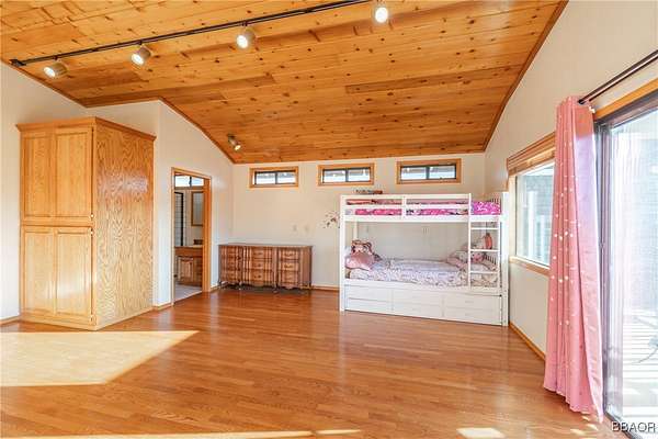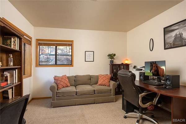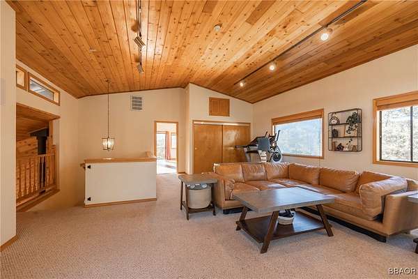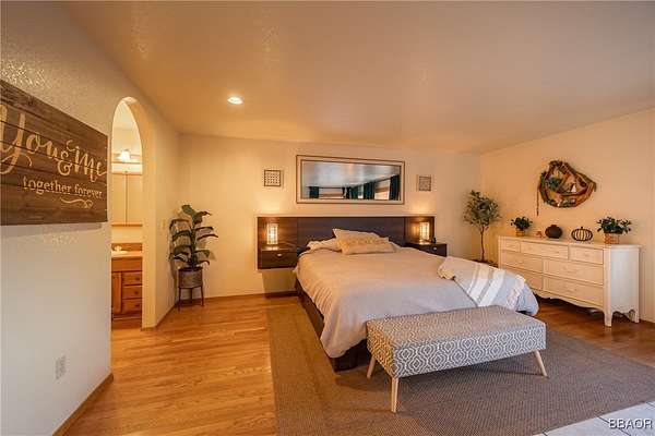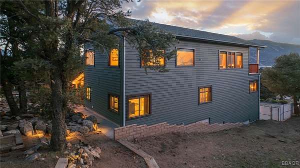 Welcome to your dream equestrian retreat with breathtaking views of Baldwin Lake, surrounding mountains, and glowing sunsets. Situated on over 2 acres of serene land, this rare property blends the tranquility of mountain living with the convenience of nearby access to the High Desert. Boasting over 3,100 square feet of living space, this spacious home features dual suites on both levels, ideal for multi-generational living or hosting guests. A large fenced yard, horse corral, barn, and arena make it a perfect haven for equestrian enthusiasts. Enjoy low-maintenance living with vinyl siding, a 40-year roof installed in 2012, and durable Trex decking for year-round outdoor relaxation. The oversized 2-car attached garage offers ample storage space, while a Generac 14kW whole-house backup generator powered by natural gas ensures you're never left in the dark. The home is equipped with owned solar panels and sits on a private well, providing energy efficiency and independence. Step outside and soak in the surrounding natural beauty while enjoying unmatched privacy and space. Whether you're looking to ride, relax, or simply breathe in the mountain air, this one-of-a-kind property offers it all. Equestrian living, stunning views, and sustainable features - all within reach of the valley below. Don't miss your chance to own a piece of Big Bear's best-kept secret.