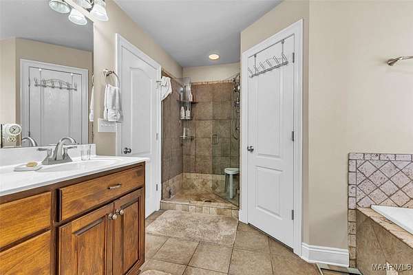 - High Ceilings, Jetted Tub, Kitchen Island, Pull Down Attic Stairs, Separate Shower, Walk In Closets, Window Treatments