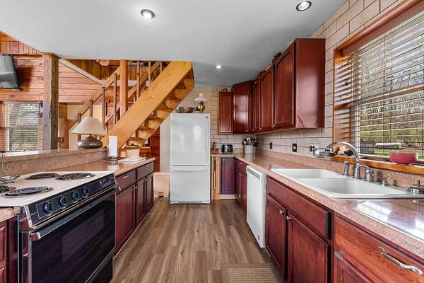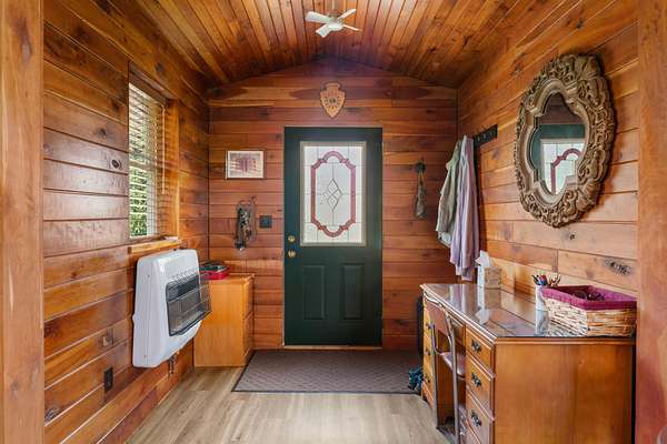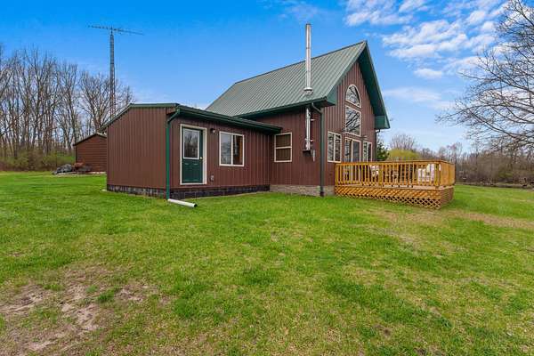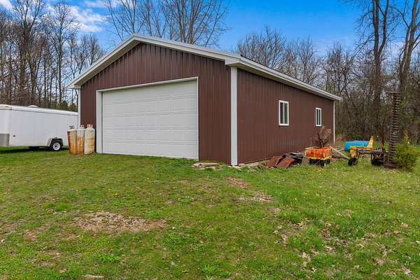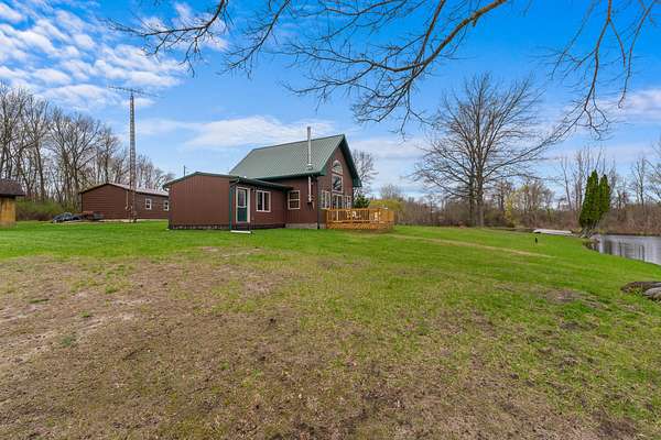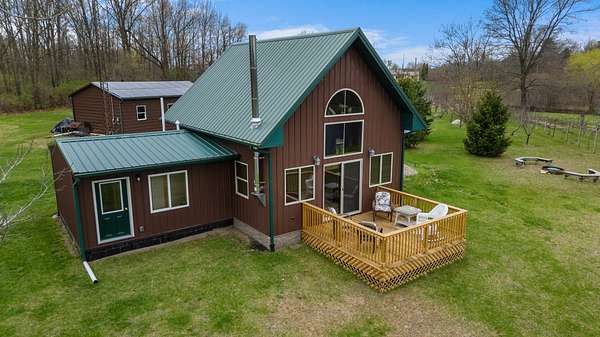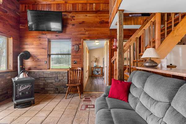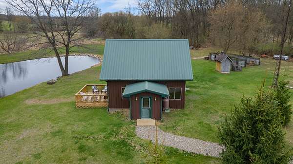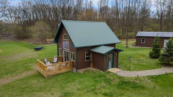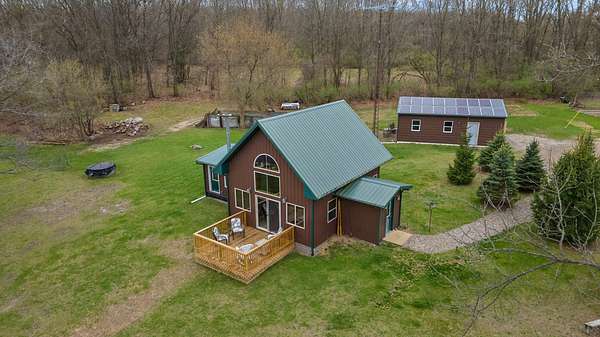 Est $1,680/moA uniquely self-sufficient cabin with 6.48 acres, a stocked pond with aerator, an insulated, solar panel topped 20 x 30 garage with grid tied inverter, a 20 x 40 pole barn, fruit trees, nut trees, berries, garden space and soooo much more! A must see!!! Come and experience the beauty of nature and enjoy the view from the deck.