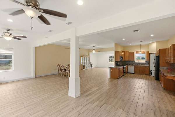 - Ceiling Fans(s), Eat-In Kitchen, High Ceilings, Open Floorplan