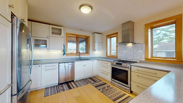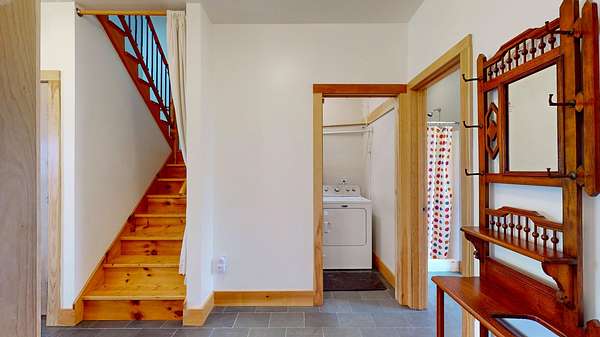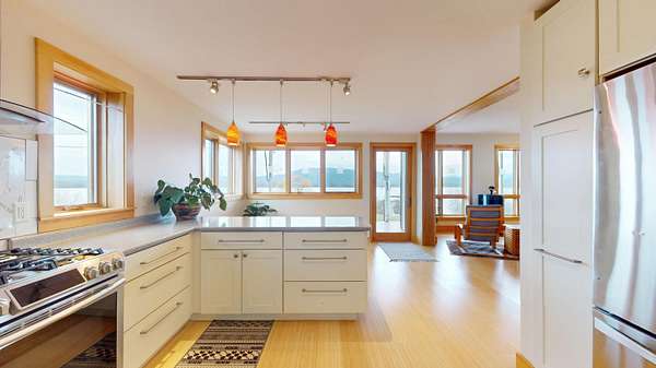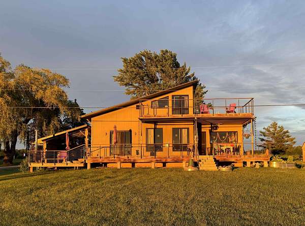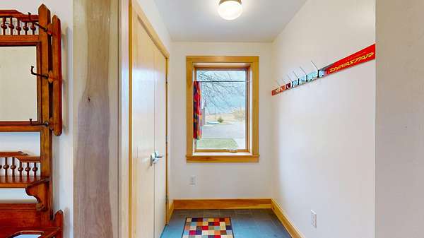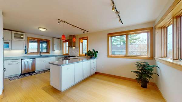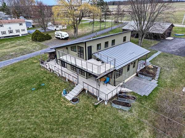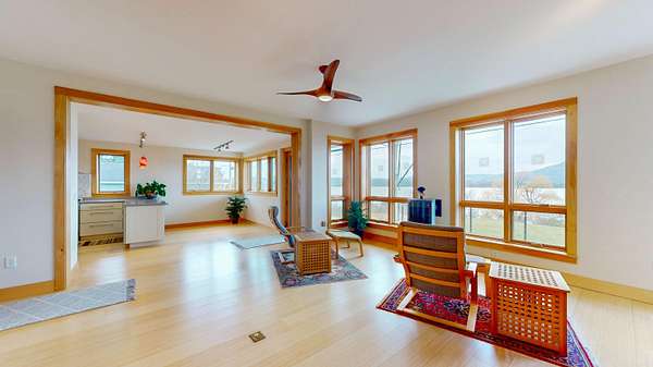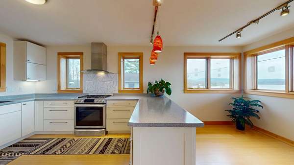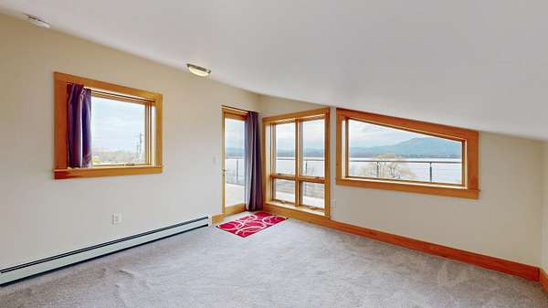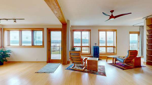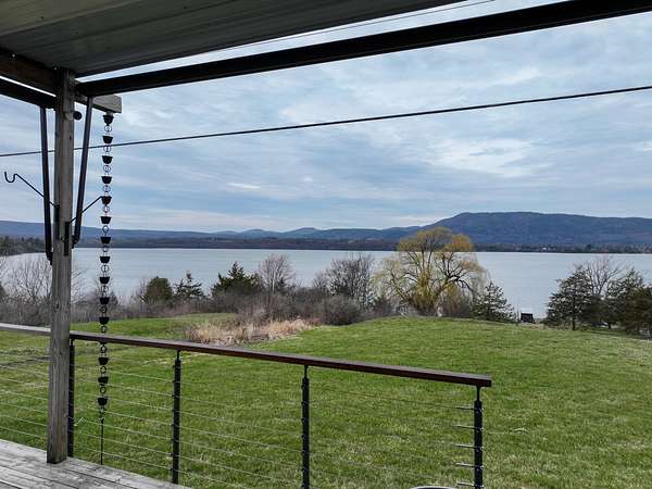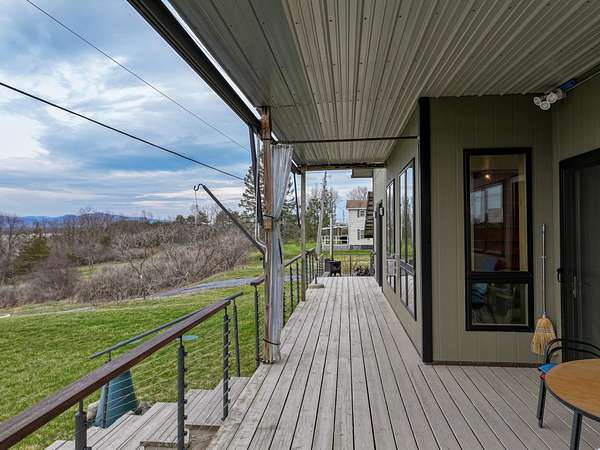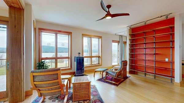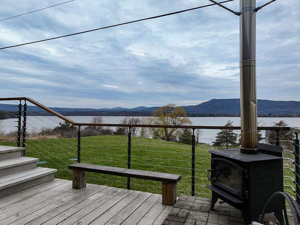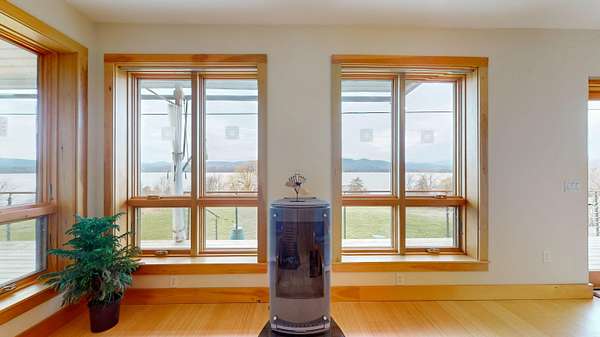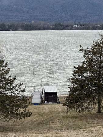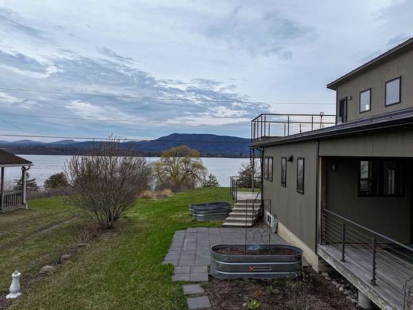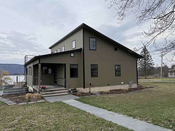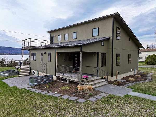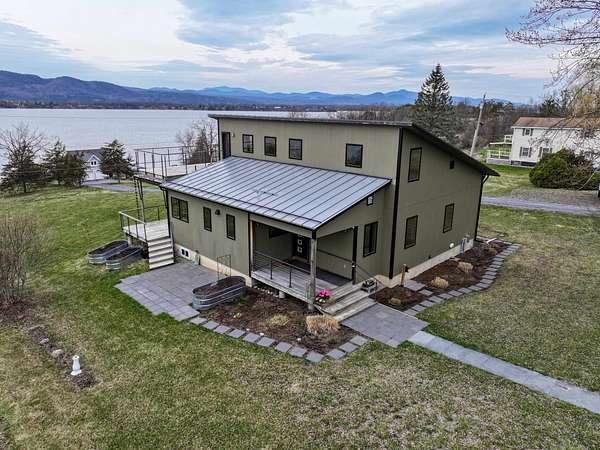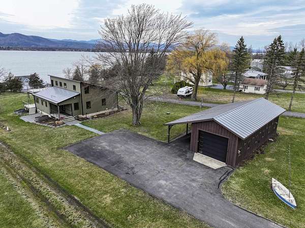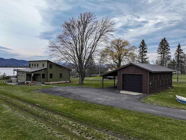 Beautiful lakefront retreat offering 100 feet of direct shoreline and breathtaking panoramic views of both the lake and surrounding mountains. This 10-year-old thoughtfully designed home showcases a Vermont slate foyer and bamboo first floor flooring. Designed for exceptional energy efficiency, including triple pane windows, 10-inch walls, a standing seam metal roof, and modern mini split systems for year-round comfort. The open living spaces connect seamlessly to a large deck with awnings, perfect for entertaining or relaxing in the hot tub, with the added luxury of an outdoor shower. A moveable boat dock enhances easy lake access and waterfront enjoyment. The property also includes a flexible garage/outbuilding with carport and workshop space. There is also a paved driveway for convenience. This property is a rare combination of contemporary design, high performance construction and prime lakefront living.