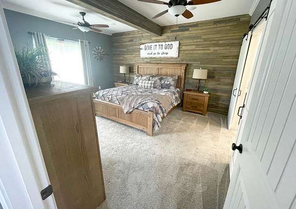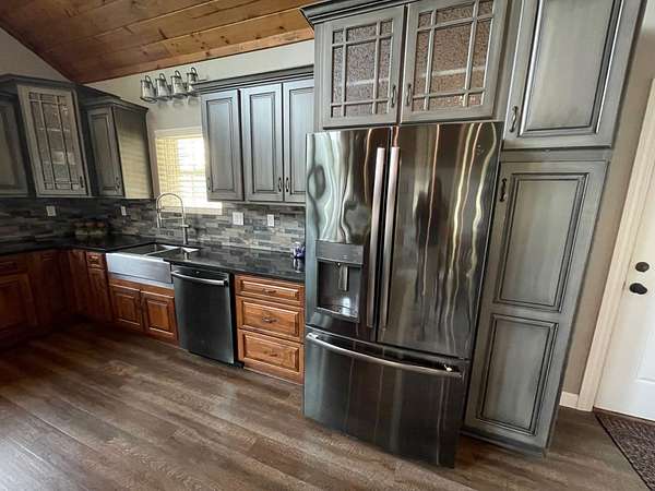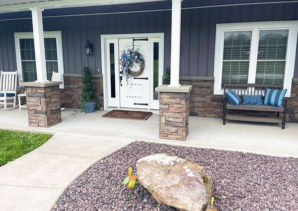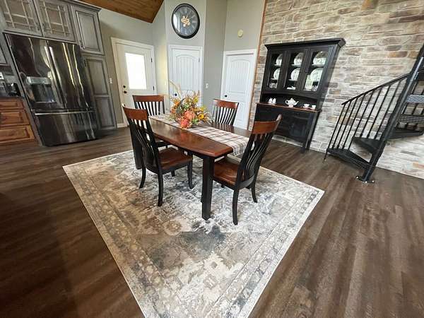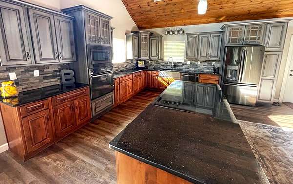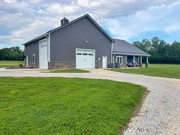 Indulge in the ultimate blend of elegance and comfort in this stunning barndominium, featuring high end finishes throughout! Enjoy the large great room with beautiful rock fireplace / Gourmet kitchen with an abundance of two-tone cabinetry, work island, granite countertop, & comes equipped with graphite stainless steel appliances / Soaring wood ceiling in main living area / Owners suite is a private retreat offering L shape vanity, whirlpool tub, custom tiled shower, water closet, & huge walk in closet / Spiral staircase / Rock accent wall / Spacious loft bedroom / LVP flooring / 3rd bedroom used as office / 1940 sq.ft. of living area + 2000 sq. ft climate controlled shop / Well insulated / Covered front porch / Detached 16x48 garage with workshop area / Covered rear patio overlooks a private stocked pond while surrounded by 14.68 private acres / This is more than a home; it's a lifestyle! Discover your secluded dream sanctuary today! ...Additional list of amenities available.