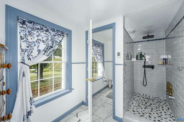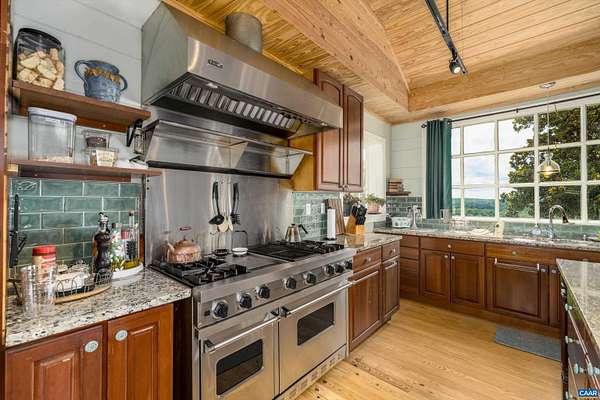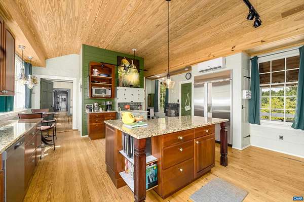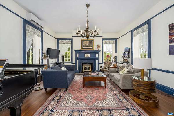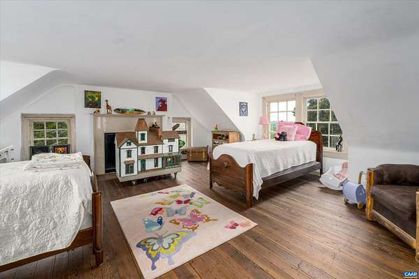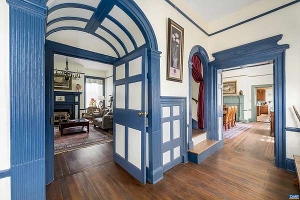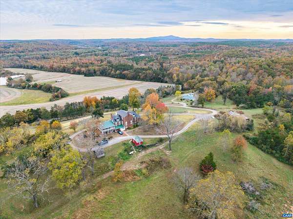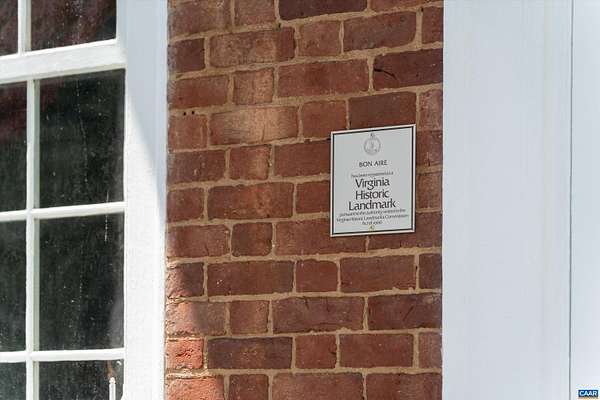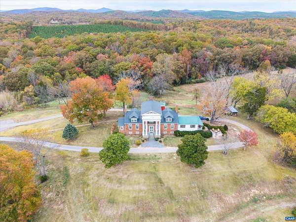 Perched just perfectly on a hill overlooking the Nelson County valley is Bon Aire, circa 1798, listed in the National Register of Historic Places & the Virginia Landmarks Register and was recently published on the cover of the Fine properties magazine. Built by Dr. George Cabell, Jr., this property embodies Jeffersonian influence and heritage. The county states there are (8) division rights. This distinctive hilltop estate offers 4 spacious bedrooms, 2.5 baths, 10-14 ft ceilings, hardwood floors, synthetic slate roof, gourmet kitchen, and 7 wood-burning fireplaces. Located in the basement is the Airbnb, "The Sunflower Room", with private entrance, kitchenette, full bath, and bedroom. The 43-acre property has a fully updated 3-bed, 1 bath guest cottage with whole-house generator, a barn, and multiple outbuildings. The main house and the guest cottage have been thoughtfully restored while maintaining the historical integrity. There are graceful arches, recessed panels, Chippendale-style portico railings, and a staircase tucked within a side arch to the 2nd floor. The features are a design hallmark linked to Thomas Jefferson and his associates. Bonus! - $100,000 of farm equipment included with a full price offer.