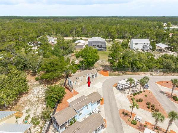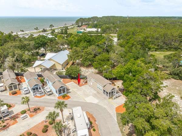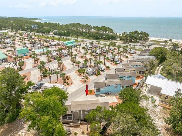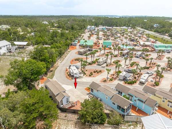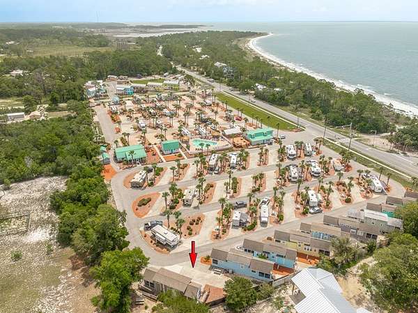If heading East on Highway 98, turn left into the Carrabelle Beach RV Resort, then take the first left and follow that road until you see this unit on your left.