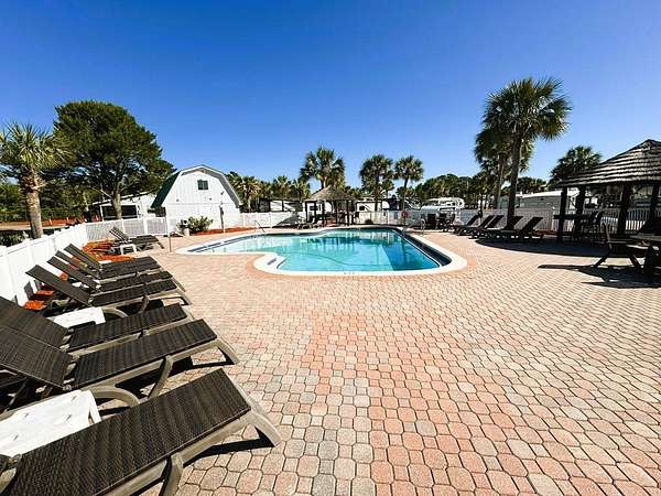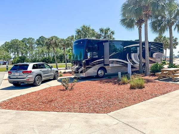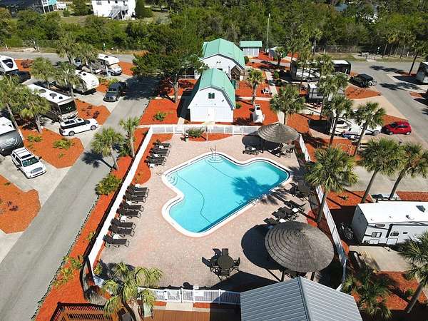 Are you searching for the perfect RV park? Look no further than Carrabelle Beach RV Resort! Our Deluxe 45 ft Back-in RV Site offers the ultimate RV experience, with access to the beautiful white sands of pet-friendly Carrabelle Beach, a natural landscape, and a level concrete pad. Carrabelle Beach RV offers full hookups, including 30 and 50-amp electric, Wi-Fi, and cable, as well as outstanding onsite amenities to ensure your stay is peaceful and relaxing. Heated swimming pool with tiki tables, a Pavilion with a TV for your favorite football games, live entertainment for all paying guests, a new laundry facility, a clubhouse with a pool table and full kitchen, a fenced-in dog park, and a fish-cleaning station. Deluxe sites in the front two rows are always in high demand. Don't miss out on this opportunity to enjoy paradise today!
