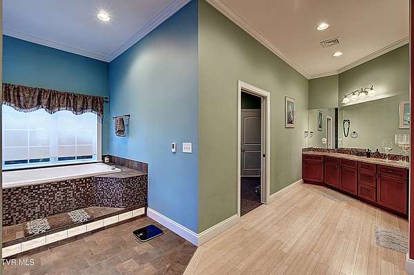 - 2+ Person Tub, Bar, Built-In Features, Eat-In Kitchen, Entrance Foyer, Granite Counters, Kitchen Island, Kitchen/Dining Combo, Open Floorplan, Pantry, Solid Surface Counters, Utility Sink, Walk-In Closet(s), Wet Bar, Wired For Data