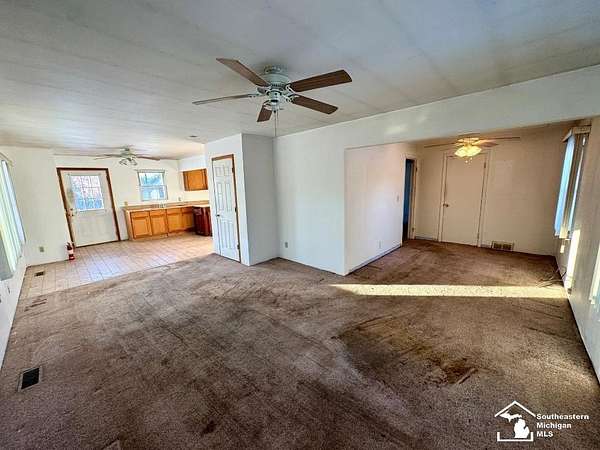 Country ranch with 2 bedrooms, open floor plan, partial basement. Home is sourrounded by almost five acres. 31x24 detached garage plus two other outbuildings. Second bedroom is currently being used as formal dining room. Home is being sold "as is" to settle estate.