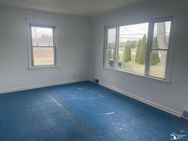Est $1,147/moCountry ranch with 2 bedrooms, open floor plan, partial basement. Home is sourrounded by almost five acres. 31x24 detached garage plus two other outbuildings. Second bedroom wall has been removed and is being used as a dining room, walls can be added to make a two or three bedroom ranch. Freshly painted throughout. Home is being sold "as is" to settle estate. Home has many possibilities. Newer detached garage plus second outbuilding. Septic tank cleaned and inspected Febrruary 2026. Well pump updated 2025.