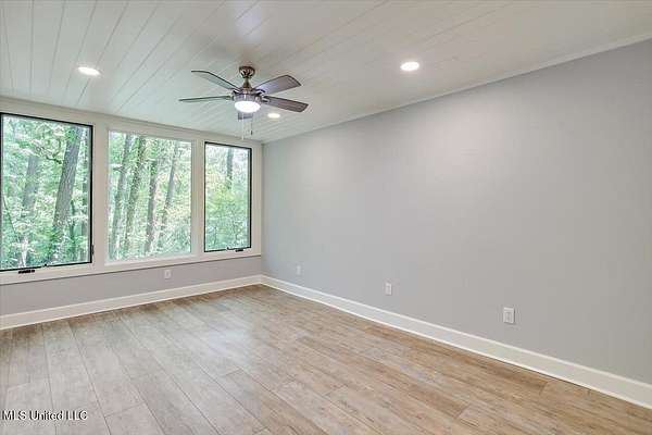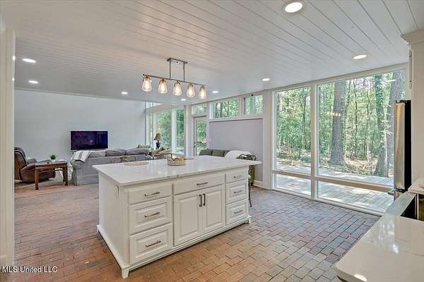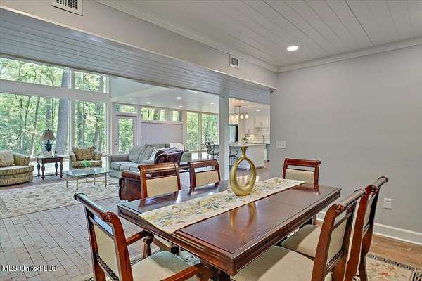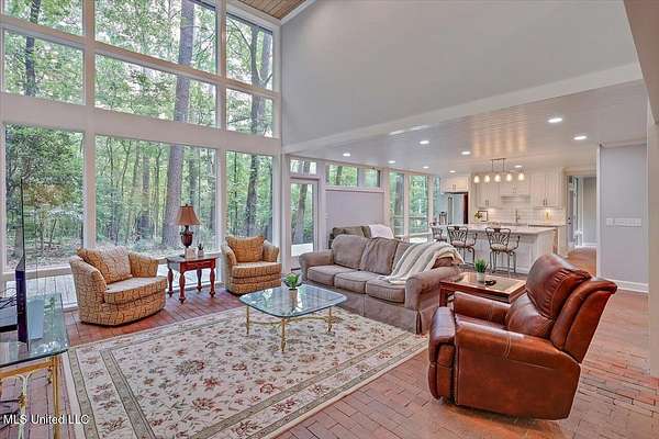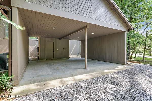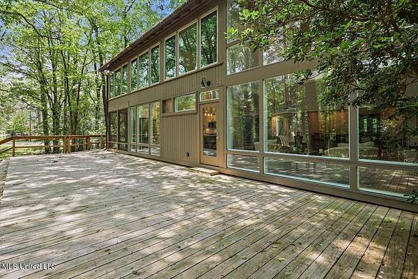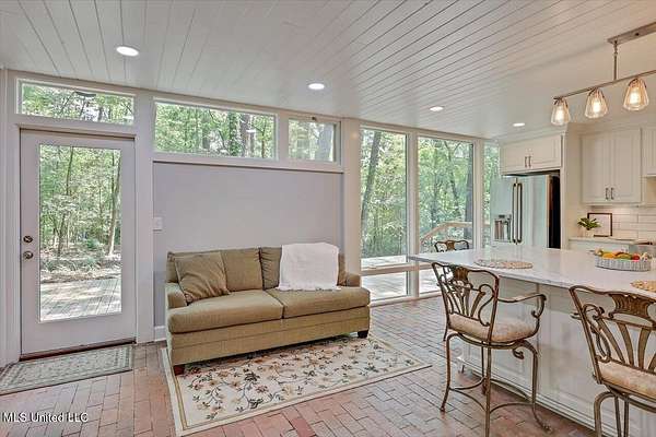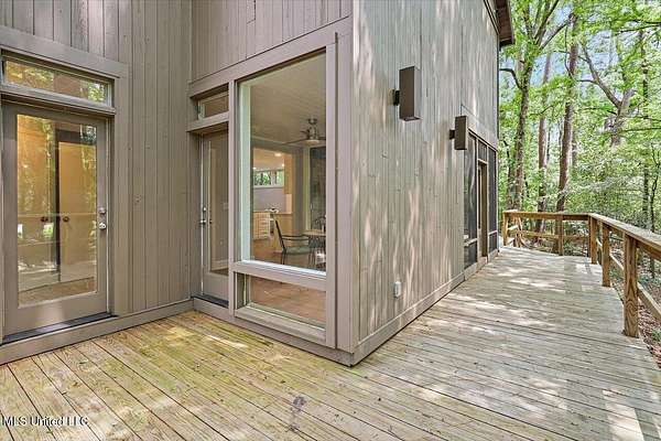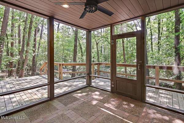 Welcome to your private wooded sanctuary on 1.6 acres-just half a mile from The District at Eastover, where premier shopping, dining, and entertainment await! This stunning contemporary home was completely renovated in 2022 and offers 5 bedrooms, 3.5 baths, and over 1.5 acres of serene wooded privacy, all just minutes from city conveniences. Step inside to a soaring living room filled with natural light from a wall of windows overlooking the picturesque backyard. Gorgeous brick flooring and warm cypress ceilings flow throughout the main level, adding texture, charm, and character. The formal dining room offers plenty of space to host, and the fully updated kitchen is a dream come true - featuring a large island, farmhouse sink, sleek stainless steel appliances, and modern finishes. A cozy breakfast nook, laundry area, and half bath are just off the kitchen, along with access to a peaceful screened-in porch perfect for year-round enjoyment. The primary suite is conveniently located on the main floor and boasts a private deck, spacious walk-in shower, and a calming, nature-filled view. Upstairs, you'll find four additional bedrooms, two beautifully renovated bathrooms, and a bright office or den with a wall of windows overlooking the front yard and a dramatic view into the living room below - ideal for work or study. Outside, enjoy the expansive wraparound deck, perfect for spotting wildlife and unwinding among the trees. The two-car carport with extra storage adds function to this nature-filled retreat. If you've been searching for modern comfort, privacy, and character all in one, this rare find delivers.