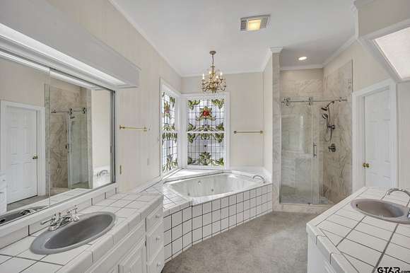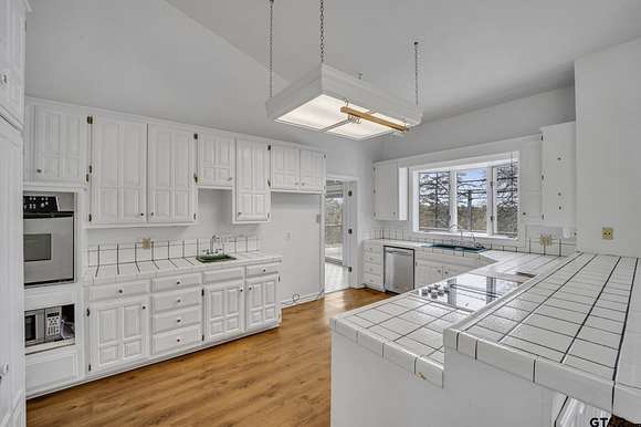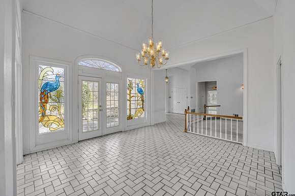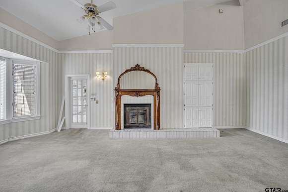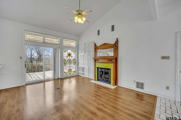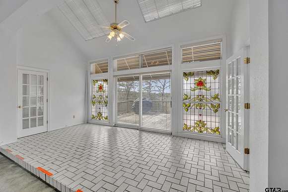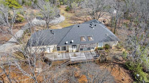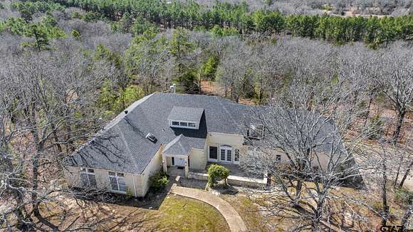 Secluded Architectural Gem on Nearly 12 Acres in Lindale! Discover a one-of-a-kind architectural masterpiece nestled atop a hill on nearly 12 gated and fenced acres in Lindale. Designed by an architect, this stunning 3,519 sq. ft. home offers breathtaking views from its expansive deck, surrounded by serene, mature trees for ultimate privacy. This unique property features three bedrooms, two and a half bathrooms, dedicated office with fireplace and tons of storage. This home provides an inviting floor plan with character and warmth throughout. The formal dining room and breakfast area boast a cozy fireplace, while the living room and master bedroom each have their own fireplaces, complete with imported mantles that add timeless charm. Gorgeous stained-glass accents throughout enhance the home's distinctive beauty. Additional highlights include an oversized two-car garage, a separate storage building, and endless potential for customization. Built in 1982, this home is a rare find, offering a blend of architectural elegance and natural beauty. Don't miss this opportunity to own a truly unique property in the heart of East Texas! Schedule your private tour today!