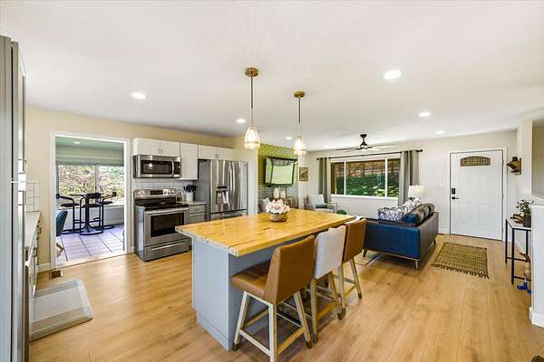 A very large detached 30 x 50 ft. 3 1/2 car garage with 11 ft. ceilings offers excellent space for a workshop, storage, vehicles, boats, and recreational equipment. An RV hookup is already in place, making the property well-suited for guests or travel accommodations.