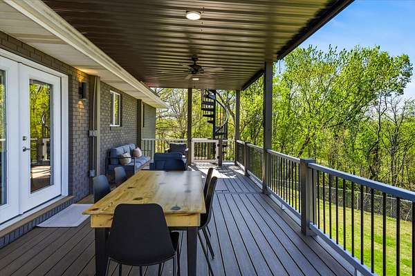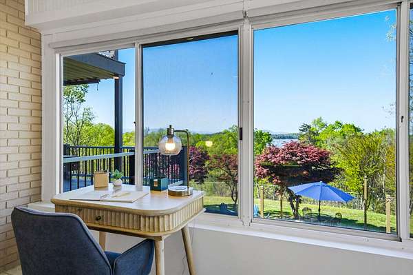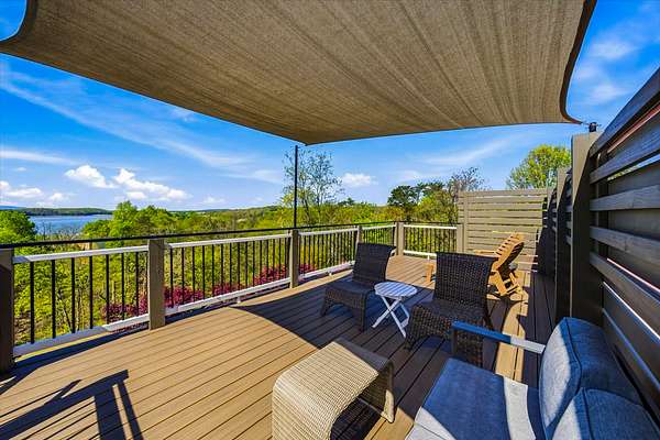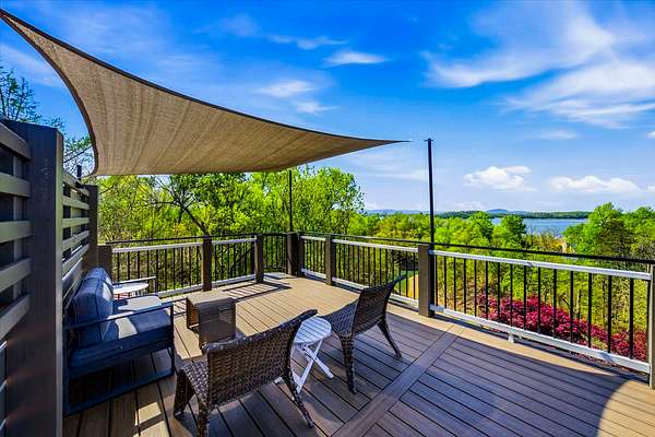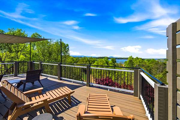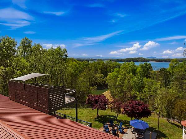 Spacious and inspiring lakefront home located at 1845 Bouldercrest Dr. in Dandridge, Tennessee, offering breathtaking views of Douglas Lake and Great Smoky Mountains from the new main level or rooftop decks.