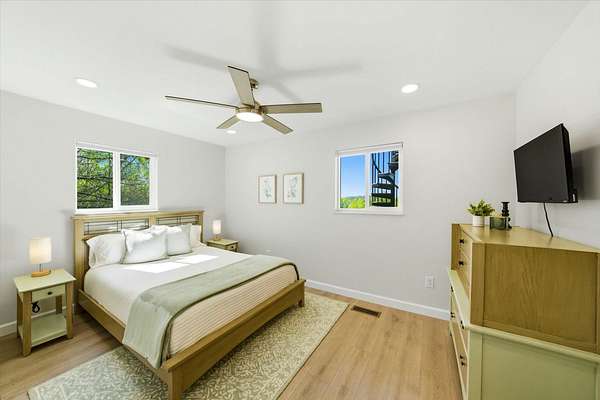 The outdoor amenities set this property apart, including a private boat dock located in a protected cove, ideal for boating, fishing, and water recreation on over 30,000 acres of public water. The spacious fenced yard offers both privacy and usability, while the additional acreage provides room to expand and enjoy.